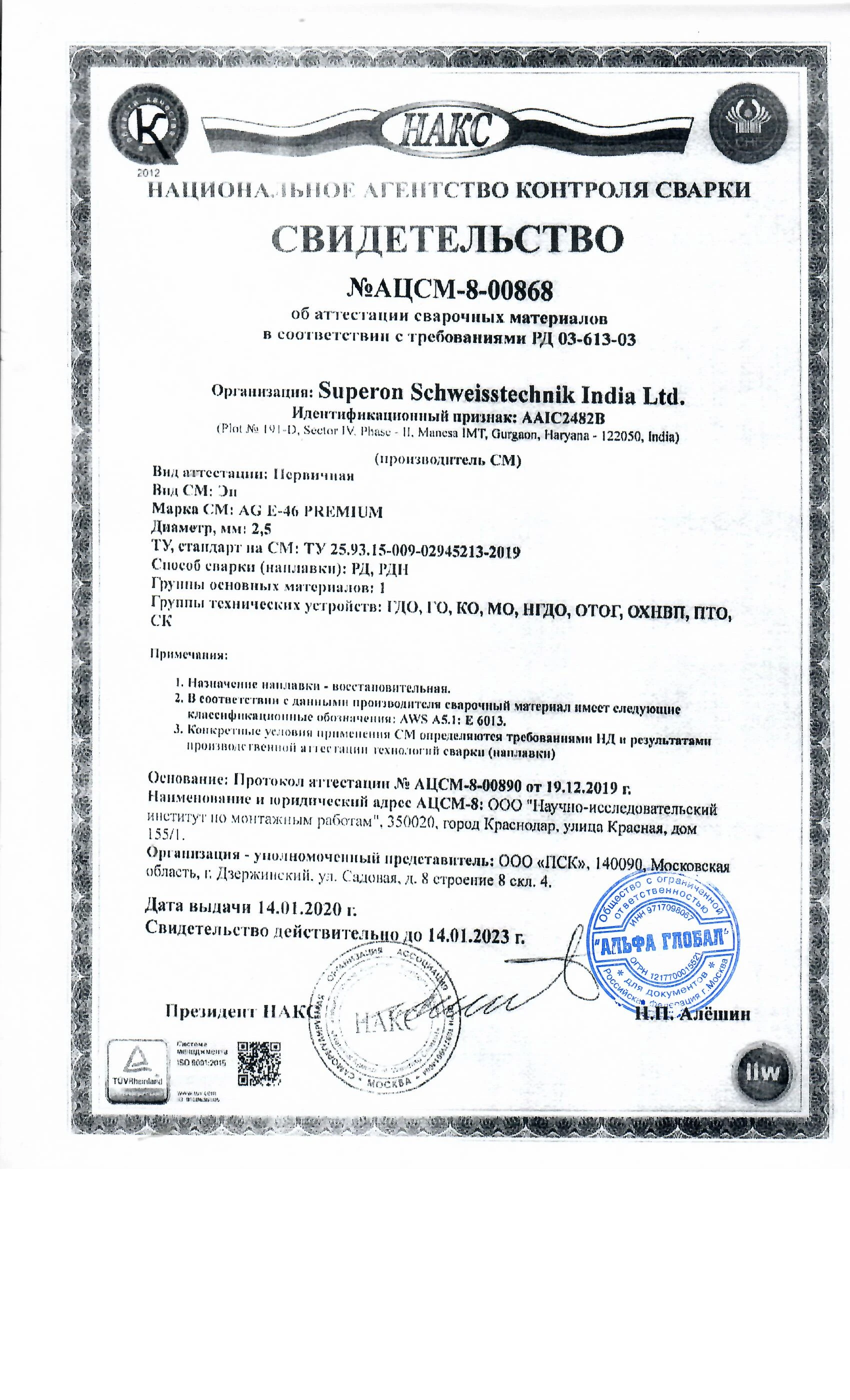 AG E-46 Premium - это рутиловый высококачественный электрод, обладающий высокими сварочно-технологическими характеристиками, предназначенный для сварки конструкций из углеродистой и низколегированной стали. AG E-46 Premium - используется для сварки крупных металлических тяжело нагруженных конструкций и технологического оборудования, для сварки трубопроводов, а так же в судостроении и строительной промышленности. AG E-46 Premium - это высококачественный электрод, обладающий, высокими показателями ударной вязкости металла шва. Состав электрода способствует образованию мощной, мягкой и стабильной дуги, и устойчивой к изменениям сварочного тока, что является важным фактором при сварке в различных производственных условиях.
