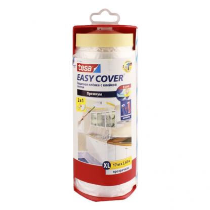 Универсальная укрывная пленка tesa Easy Cover — стандартная укрывная пленка, которая для удобства нанесения и создания четких границ окрашенных поверхностей соединена с малярной лентой tesa.