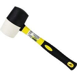 Киянка, чёрно-белая резина, фибергласовая обрезиненная ручка, 680г предназначена для эксплуатации на строительных площадках при укладке кирпича и других материалов. Наличие круглого бойка из резины обеспечивает отличную амортизацию. Инструмент имеет удобную рукоять.