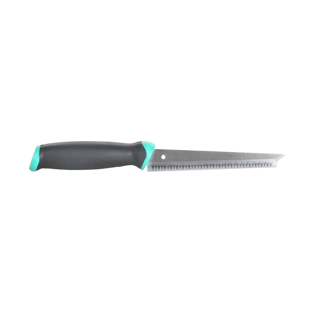 Ножовка по дереву и ГКЛ 150 мм Sturm - подойдет для распиливания по заданному контуру. Двухкомпонентная рукоятка не скользит в руках. Острый конец лезвия способен протыкать неплотные материалы. Имеется защитный чехол для зубьев.