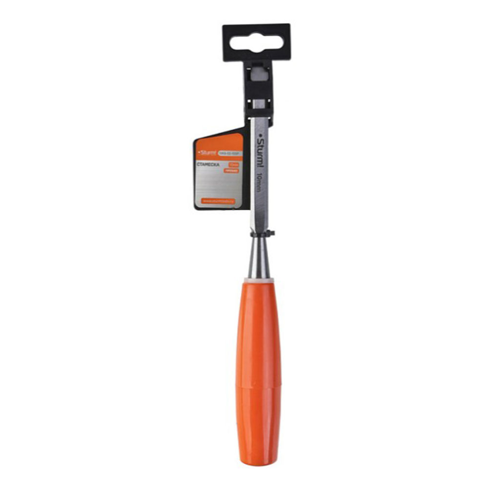 Стамеска 10 мм Sturm - ударопрочная рукоятка с противоскользящим покрытием, качественная заточка обеспечивает точный рез по дереву, протектор на острие защищает от случайных порезов. Лезвие стамески, выполненное из высококачественной инструментальной стали, обладает исключительной остротой и способностью долго сохранять режущие свойства. Ширина полотна в 10 мм делает эту модель универсальной для выполнения широкого спектра задач – от грубой обтески до тонкой резьбы и выборки пазов. Оптимальная закалка стали гарантирует устойчивость к износу и ударным нагрузкам, позволяя инструменту справляться даже с наиболее твердыми породами древесины.