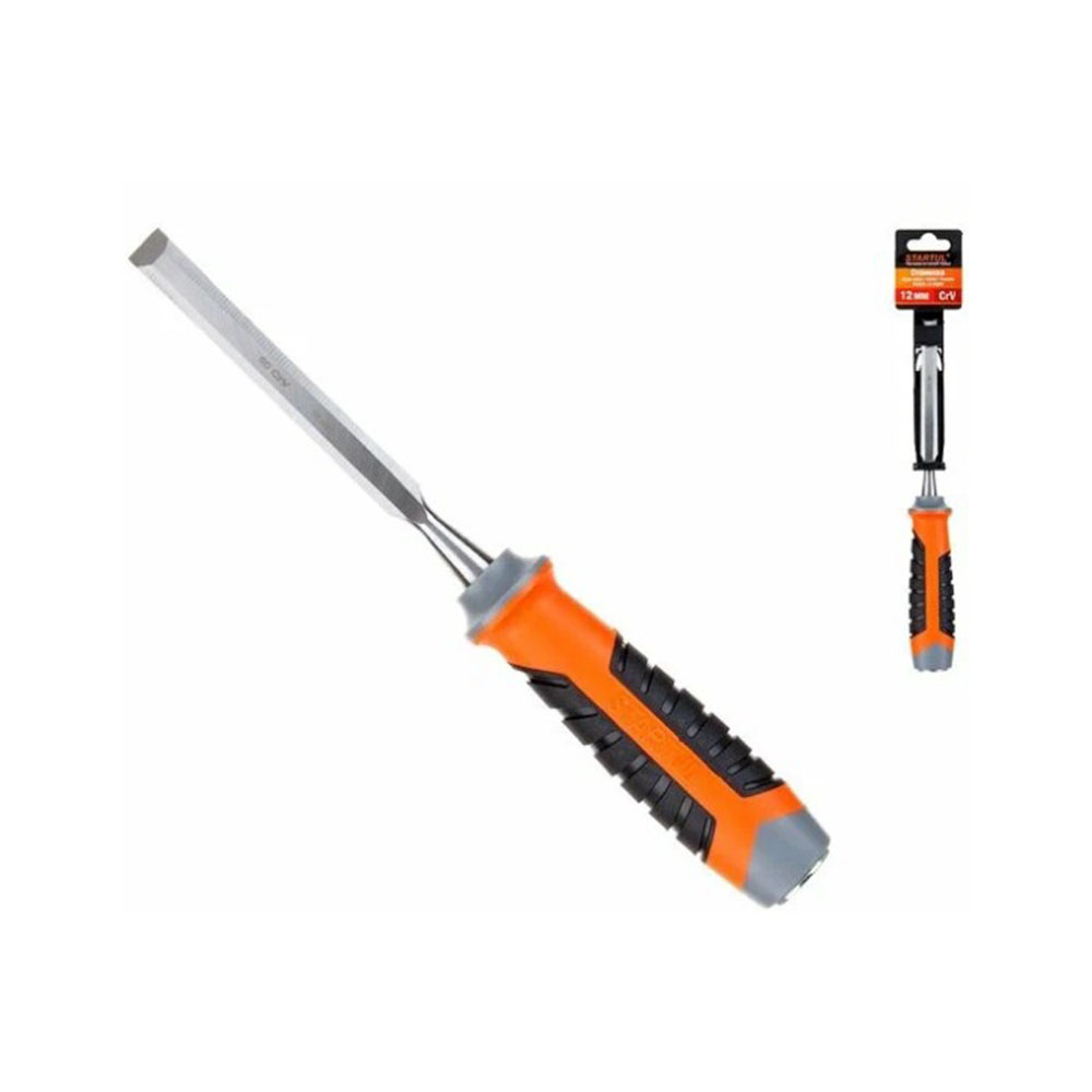 Стамеска 12 мм STARTUL Profi - универсальна в использовании. Инструмент подойдет для работы вручную, а также вместе с молотком. Металлический тыльник безопасен в работе. Стамеска оснащена скошенными краями - это исключает застревание инструмента. Удобная профилированная рукоять значительно облегчает процесс снятия слоя древесины.