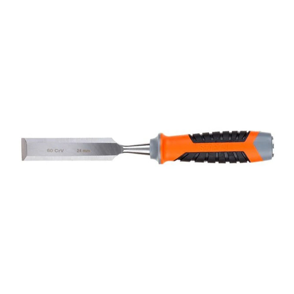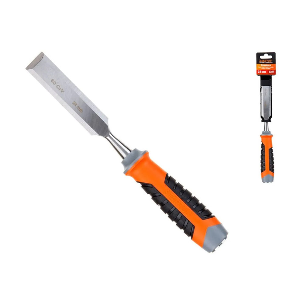 Стамеска 24 мм STARTUL Profi - универсальна в использовании. Инструмент подойдет для работы вручную, а также вместе с молотком. Металлический тыльник безопасен в работе. Стамеска оснащена скошенными краями - это исключает застревание инструмента. Удобная профилированная рукоять значительно облегчает процесс снятия слоя древесины.