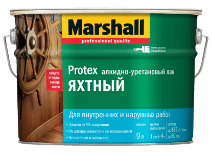 Алкидно-уретановый глянцевый прозрачный яхтный лак. Образует долговечное покрытие с защитными свойствами и хорошей стойкостью к внешнему воздействию окружающей среды (атмосферные осадки, УФ-излучение), воды и перепадам влажности и температуры внутри и снаружи помещений. Обладает грязе- и водоотталкивающими свойствами. Лак легко наносится на поверхность и разравнивается, не образуя неровностей, потеков и наплывов. Обладает экономичным расходом.