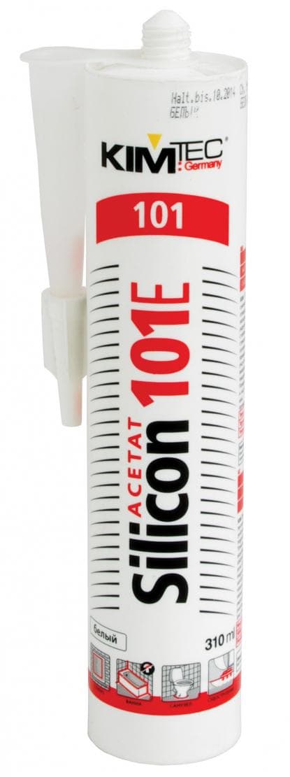 KIM-TEC Silicon 101E представляет собой однокомпонентный cиликоновый каучук, используемый в качестве герметика и клея. Под воздействием влаги воздуха продукт быстро превращается в резинообразный, устойчивый уплотнитель. KIM-TEC Silicon 101E является продуктом многостороннего применения и основная область его использования - это высококачественные работы по уплотнению и склеиванию во многих ремеслах.
