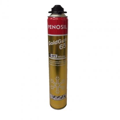 PENOSIL Gold Gun 65 — однокомпонентная полиуретановая монтажная пена Пеносил голд ган 65. Выход монтажной пены составляет до 65 литров. Благодаря новой формуле пена PENOSIL Gold Gun 65 имеет низкое вторичное расширение и не деформирует конструкцию. PENOSIL Gold Gun 65 высококачественная профессиональная монтажная пена со значительным большим выходом пены, чем у Пеносил Gold Gun. Выход пены примерно на 30 литров больше, чем у обычной пены и примерно на 15 литров больше, чем у профессиональной пены PENOSIL Gold Gun. Пена обладает однородной, равномерной мелкопористой структурой высокой плотности и обладает небольшим вторичным расширением. Пена Gold Gun 65 обладает высокой устойчивостью к влаге и плесени. Затвердевает быстро по сравнению с другими пенами, за счёт влаги из воздуха. Высокий выход монтажной пены достигается даже при отрицательной температуре. Пена PENOSIL Gold Gun 65 производится в аэрозольных баллонах под давлением, применяются с помощью профессионального монтажного пистолета для полиуретановой пены. Затвердевшая пена является хорошим тепло и звукоизолятором. Обладает высокой адгезией к большинству строительных материалов, за исключением полиуретановых, тефлоновых и силиконовых поверхностей. Затвердевшая монтажная пена Пеносил не выдерживает воздействия ультрафиолета и требует защиты монтажного шва от прямого попадания солнечных лучей. Температура воздуха во время применения должна составлять -5 °C до +30 °C.