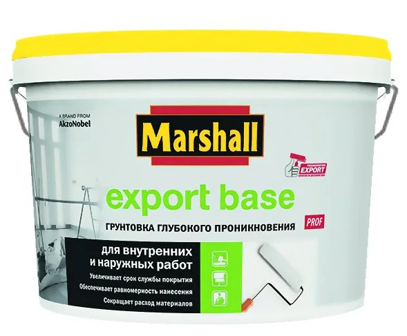 Универсальная концентрированная грунтовка глубокого проникновения на водной основе. Рекомендуется для пропитки и укрепления пористых, непрочных, сильно впитывающих и мелящих поверхностей как внутри, так и снаружи помещений. Улучшает сцепление между поверхностью и наносимым лакокрасочным покрытием, обеспечивая его долговечность и повышенную износостойкость. Совместима со всеми водно-дисперсионными красками Marshall, входит в систему покрытий Marshall Export. Для наружных и внутренних работ. Рекомендуется для нанесения на просохшие минеральные поверхности (бетон, штукатурку, кирпич и т. п.), а также гипсокартон, предварительно подготовленные ранее окрашенные поверхности.