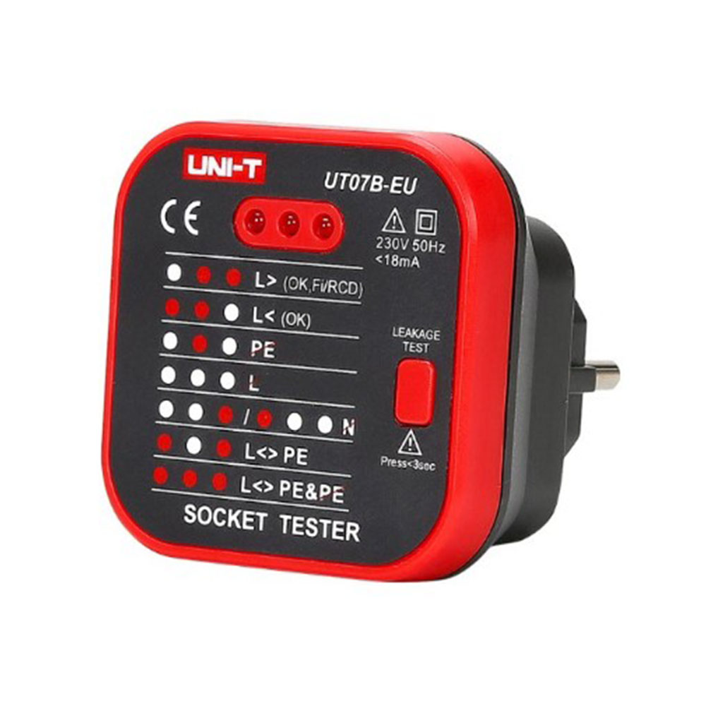 Тестер розеток UNI-T UT07B-EU 13-1121 - используется для проверки функциональности и безопасности электрических розеток. С его помощью можно легко определить состояние розетки и убедиться в правильной подаче электропитания. Прибор оснащен отверстием под зажим от 1,6 до 16 мм. Предусмотрена индикация включения питания. Светодиодная индикация позволяет быстро определить, есть ли проблемы с подачей электроэнергии. Звуковая индикация предоставляет дополнительный уровень безопасности. Автоматическое отключение питания через три минуты способствует экономии энергии и продлевает срок службы батареи.
