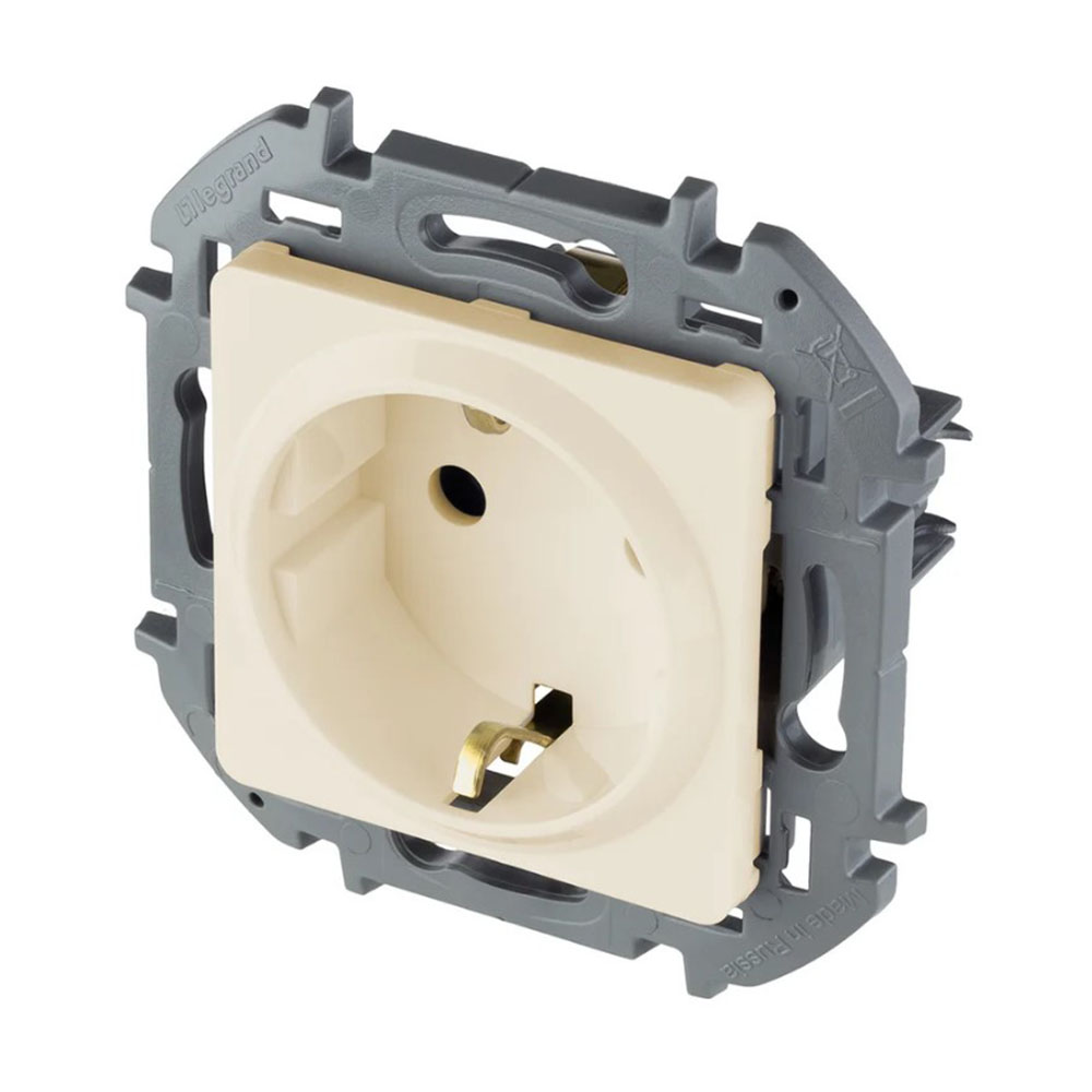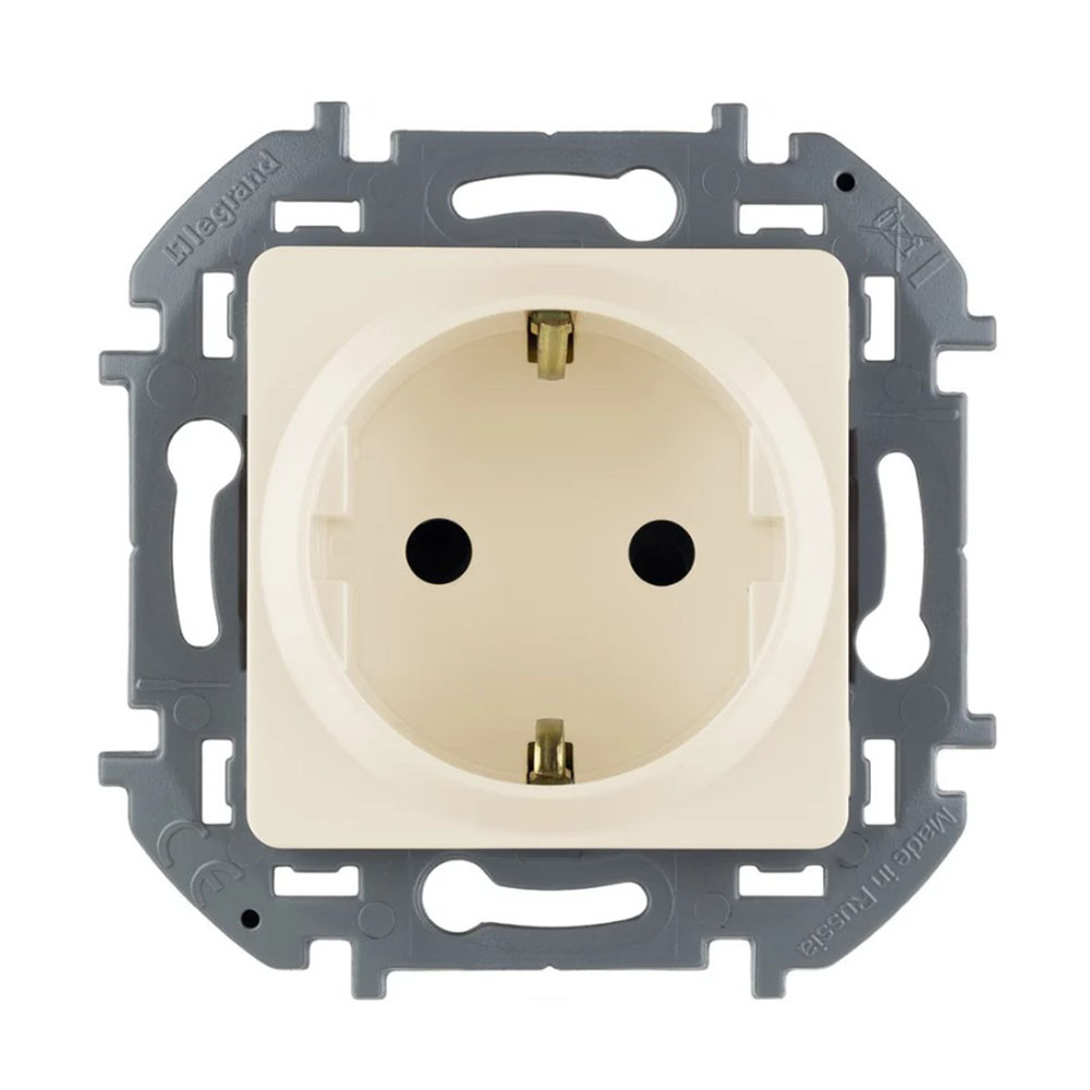 Розетка с заземлением и шторками Слоновая кость Legrand INSPIRIA - применяется для присоединения однофазных электрических потребителей к сети переменного тока в зданиях с проводкой с заземлением (с защитным проводником).
