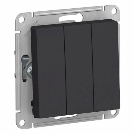 Выключатель трехклавишный Schneider ATLASDESIGN Карбон, позволяет управлять тремя источниками света из одной точки. Лицевые детали из качественного ABS-пластика, устойчивого к царапинам и УФ-излучению.