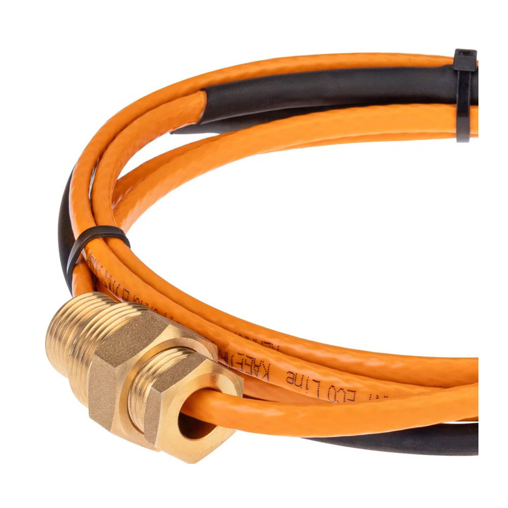 Кабель греющий саморегулирующийся пищевой SRP 10HTM2-CT в трубу 2 м/20Вт REXANT - используется в качестве профилактики замерзания бытовых трубопроводов среднего диаметра, счетчиков воды, вентилей и так далее. Самогреющийся провод соединен с питающим кабелем, на конце которого находится евровилка для подключения в сеть 220 В. В стандартных условиях температура нагревательного электрошнура не превышает 65°C. Комплекты подходят для использования как в помещениях, так и на улице благодаря классу защиты IP67. Кабель может быть смонтирован на поверхности как металлической, так и пластиковой трубы, под теплоизоляцией, а также установлен внутрь трубы, в том числе и с питьевой водой. Витки могут пересекаться сами с собой. Установка в трубу осуществляется с помощью комплекта для ввода кабеля (арт. 51-0610-1 или 51-0610-2). При монтаже на поверхности трубы витками необходимо отслеживать минимальный радиус изгиба кабеля – 40 мм.