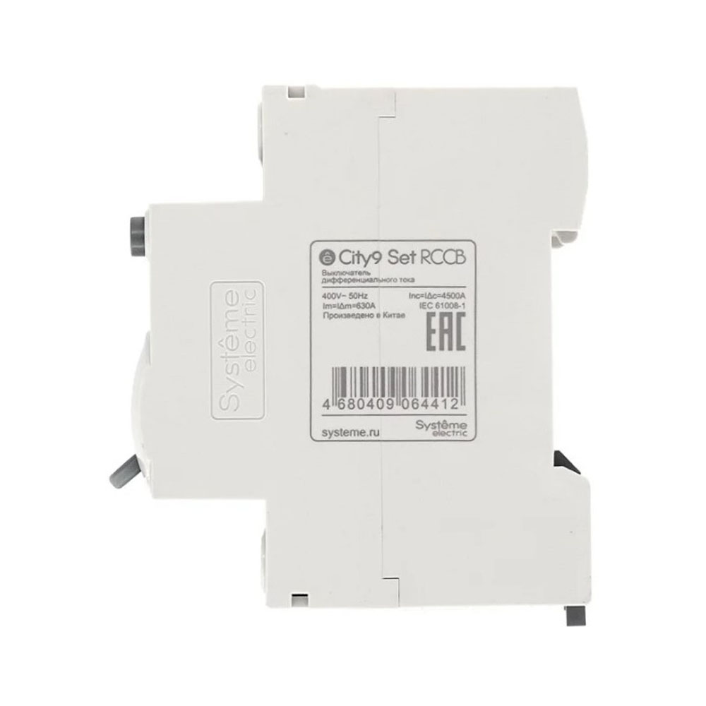 Выключатель дифференциального тока селективный 63А 4P 100мА A-S 400В City9 Set Systeme Electric УЗО - применяется в электрических сетях напряжением 400В. Уставка по току утечки обеспечивает гарантированную защиту людей при прямом и косвенном прикосновении. Кнопка тест обеспечивает проверку работоспособности аппарата. Крепление на DIN-рейку шириной 35 мм. Подключение сверху и снизу. Безопасные клеммы.