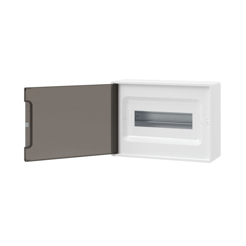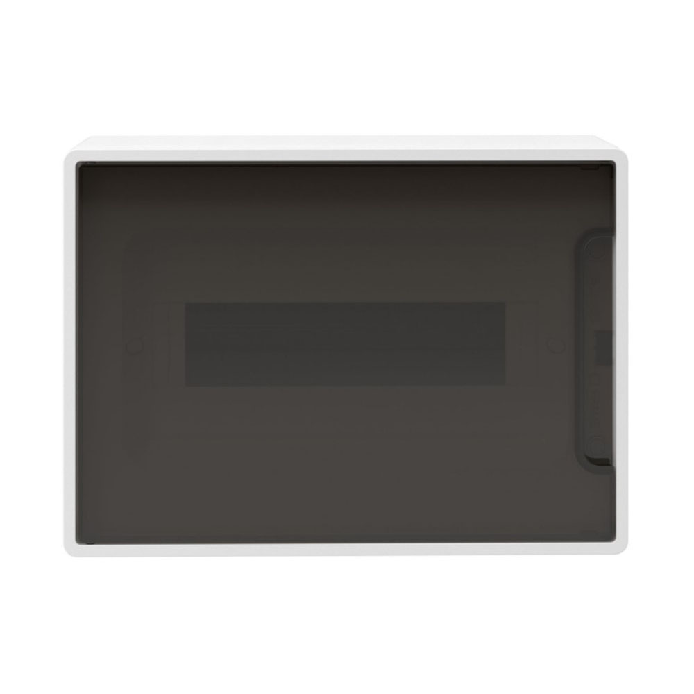 Корпус пластиковый настенный FRAME ЩРН-П-12 IP41 тонированная дверь F12W1WD DKC - предназначен для монтажа в жилых и административных помещениях. Применяется для установки модульных устройств. Установка стандартных латунных шин возможна по всем стенкам корпуса щитка. Единый корпус шинодержателя можно разделить на сегменты, и использовать отдельно, под различные длины шин, в зависимости от задач. Симметричный корпус щитка позволяет открывать дверь слева или справа.Количество модулей - 12. Цвет корпуса белый, цвет двери - тонированная, ширина - 311 мм, высота - 224 мм, глубина - 102 мм. Материал - термостойкий и ударопрочный пластик. В комплекте: оцинкованная DIN-рейка, сборочные винты для сборки щитка, 2 шины PEN на 6 и 8 отверстий, 1 шинный держатель на 7 сегментов, наклейки для маркировки, инструкция по сборке.