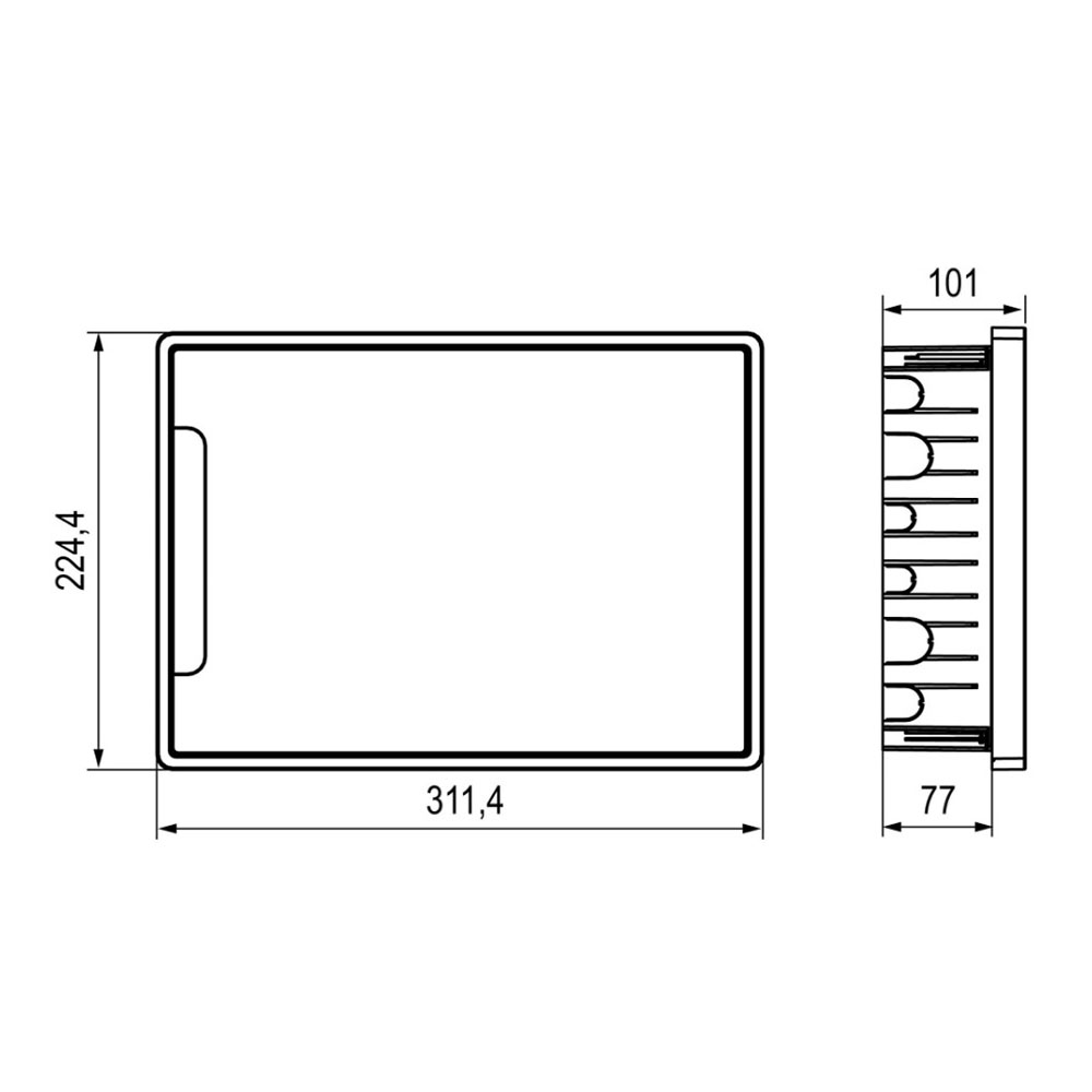 Корпус пластиковый встраиваемый FRAME ЩРВ-П-12 IP41 тонированная дверь F12B1WD DKC - предназначен для скрытого монтажа в бетонные\кирпичные стены. Применяется для установки модульных устройств. Съемная рама с DIN-рейками позволяет сначала смонтировать и подключить оборудование и затем установить его в основание щитка в стену. Установка стандартных латунных шин возможна по всем стенкам корпуса и на боковую сторону съемной рамы щитка. Единый корпус шинодержателя можно разделить на сегменты, и использовать отдельно, под различные длины шин, в зависимости от задач. Симметричный корпус щитка позволяет открывать дверь слева или справа. Количество модулей- 12. Цвет корпуса белый, цвет двери- тонированная, ширина- 311,4 мм, высота- 224,4 мм, глубина- 101 мм. Материал- термостойкий и ударопрочный пластик. В комплекте 2 шины PEN на 6 и 8 отверстий.