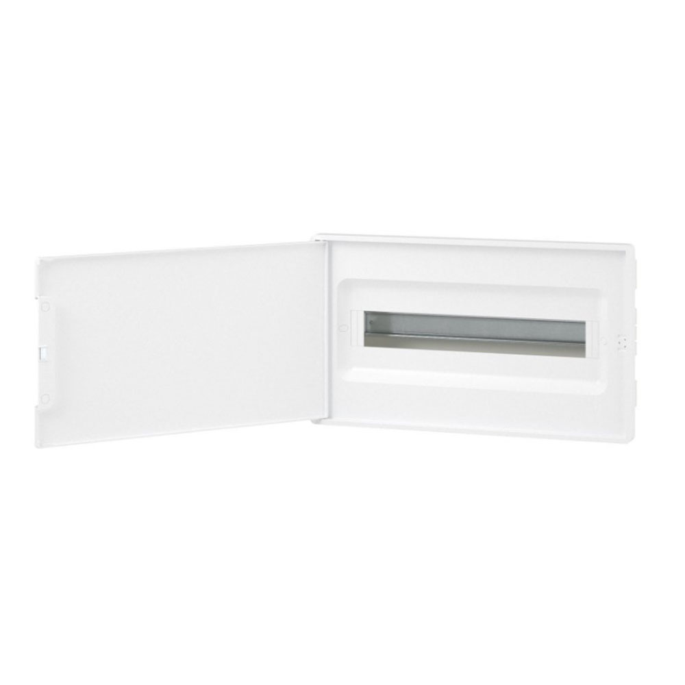 Корпус пластиковый встраиваемый FRAME ЩРВ-П-18 IP41 Белая дверь F18B1WW DKC - предназначен для скрытого монтажа в бетонные\кирпичные стены. Применяется для установки модульных устройств. Съемная рама с DIN-рейками позволяет сначала смонтировать и подключить оборудование и затем установить его в основание щитка в стену. Установка стандартных латунных шин возможна по всем стенкам корпуса и на боковую сторону съемной рамы щитка. Единый корпус шинодержателя можно разделить на сегменты и использовать отдельно. Симметричный корпус щитка. Количество модулей- 18. Цвет корпуса белый, цвет двери- белая, ширина- 416,4 мм, высота- 242,4 мм, глубина- 101 мм. Материал- термостойкий и ударопрочный пластик. В комплекте DIN-рейка из гальванической оцинкованной стали, 2 шины PEN на 8 и 10 отверстий.