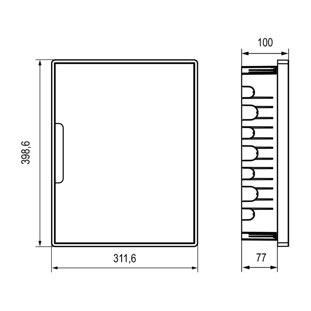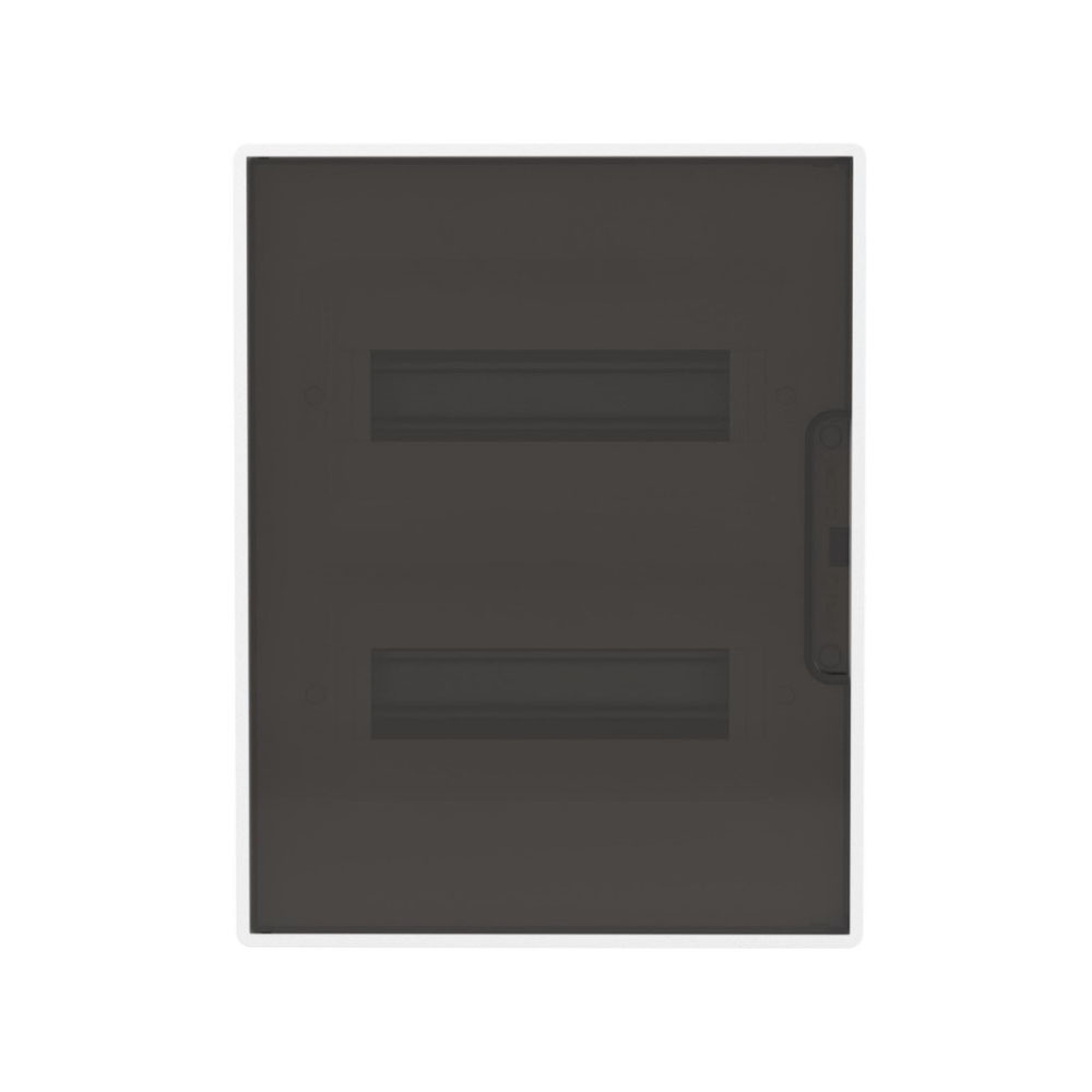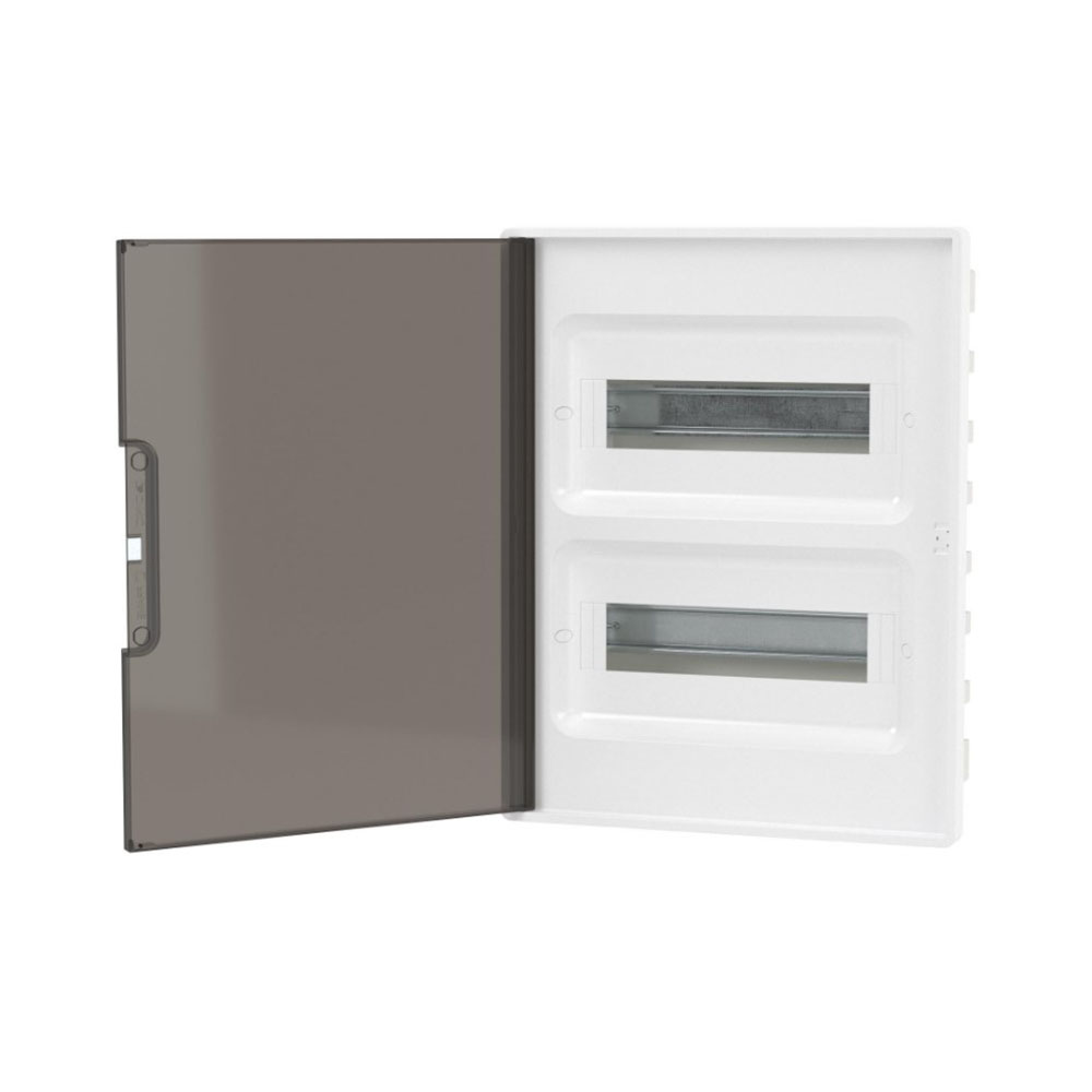 Корпус пластиковый встраиваемый FRAME ЩРВ-П-24 IP41 тонированная дверь F24B1WD DKC - предназначен для скрытого монтажа в бетонные\кирпичные стены. Применяется для установки модульных устройств. Съемная рама с DIN-рейками позволяет сначала смонтировать и подключить оборудование и затем установить его в основание щитка в стену. Установка стандартных латунных шин возможна по всем стенкам корпуса и на боковую сторону съемной рамы щитка. Единый корпус шинодержателя можно разделить на сегменты. Симметричный корпус щитка позволяет открывать дверь слева или справа. Количество модулей- 24. Цвет корпуса белый, цвет двери- тонированная, ширина- 311,6 мм, высота- 398,6 мм, глубина- 100 мм. Материал- термостойкий и ударопрочный пластик. В комплекте DIN-рейка из гальванической оцинкованной стали, 4 шины PEN по 2шт на 6 и 8 отверстий.