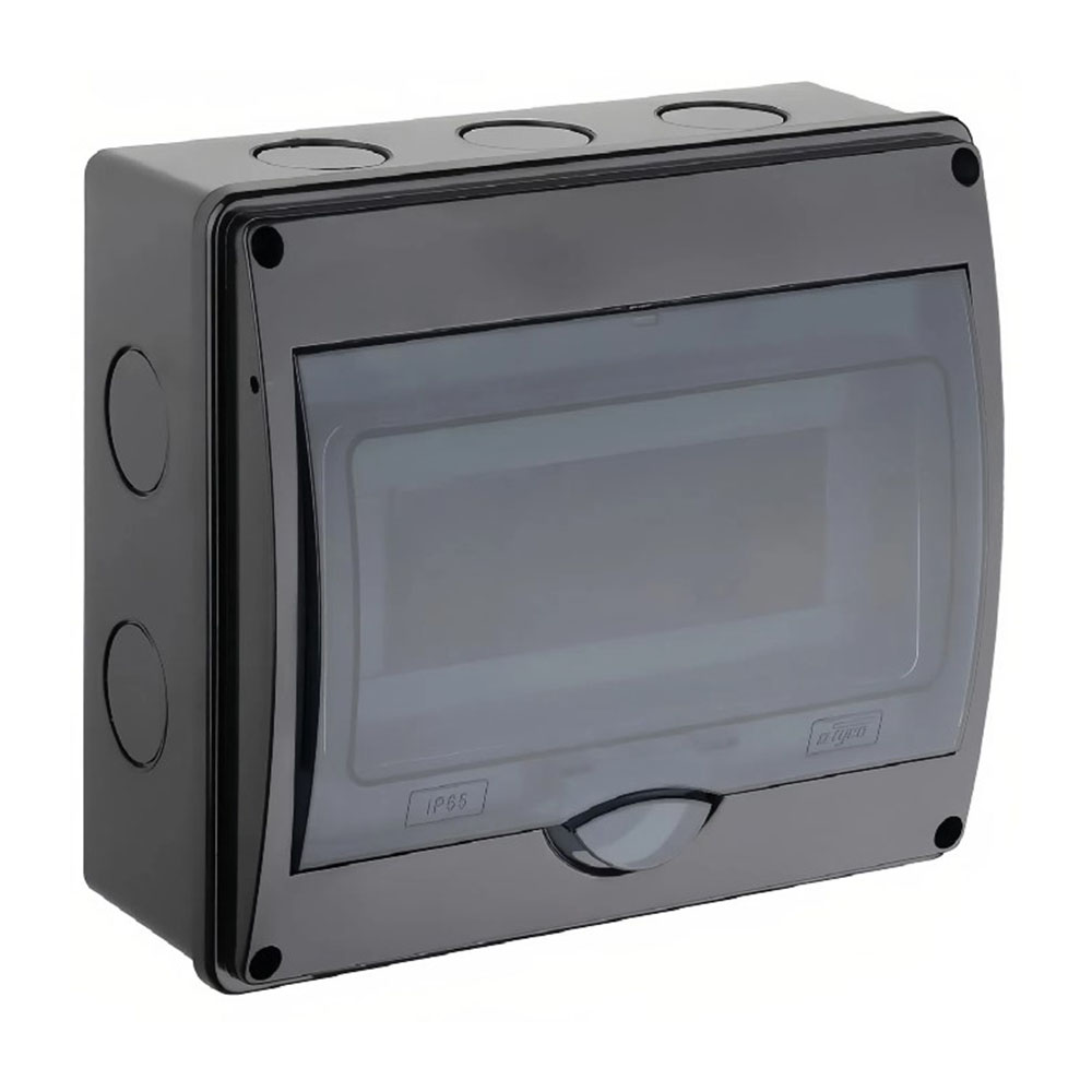 Щит ЩРн-П-10 IP66 Черный навесной пластиковый 69011Ч RUVinil - предназначен для открытой проводки под автоматические выключатели и электронные приборы, требующие высокой степени защиты от пыли и влаги. IP66 достигается за счет уплотнителя, залитого в желоб корпуса и крышки щитка. Температура монтажа: от -25 до +60 С. Диапазон рабочих температур: от -30 до +60 С.