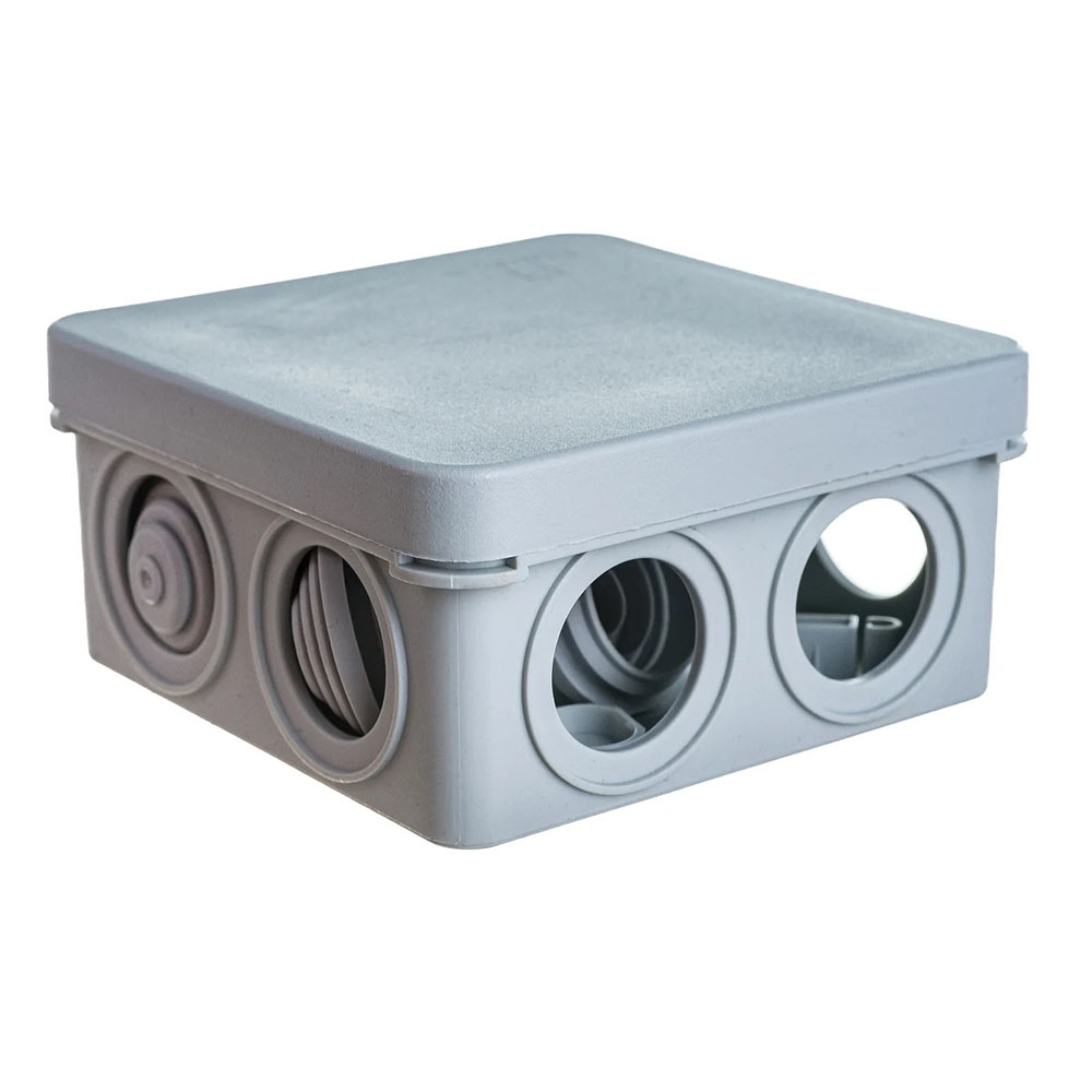 Коробка распаячная наружная 80х80х40 40-0210 Промрукав - применяется при прокладке электропроводки по стенам, потолкам зданий и сооружений для механической защиты мест соединения проводов и кабелей и для защиты от проникновения пыли, влаги и посторонних предметов. Коробки придают эстетичный вид местам соединения проводов.