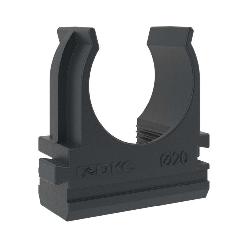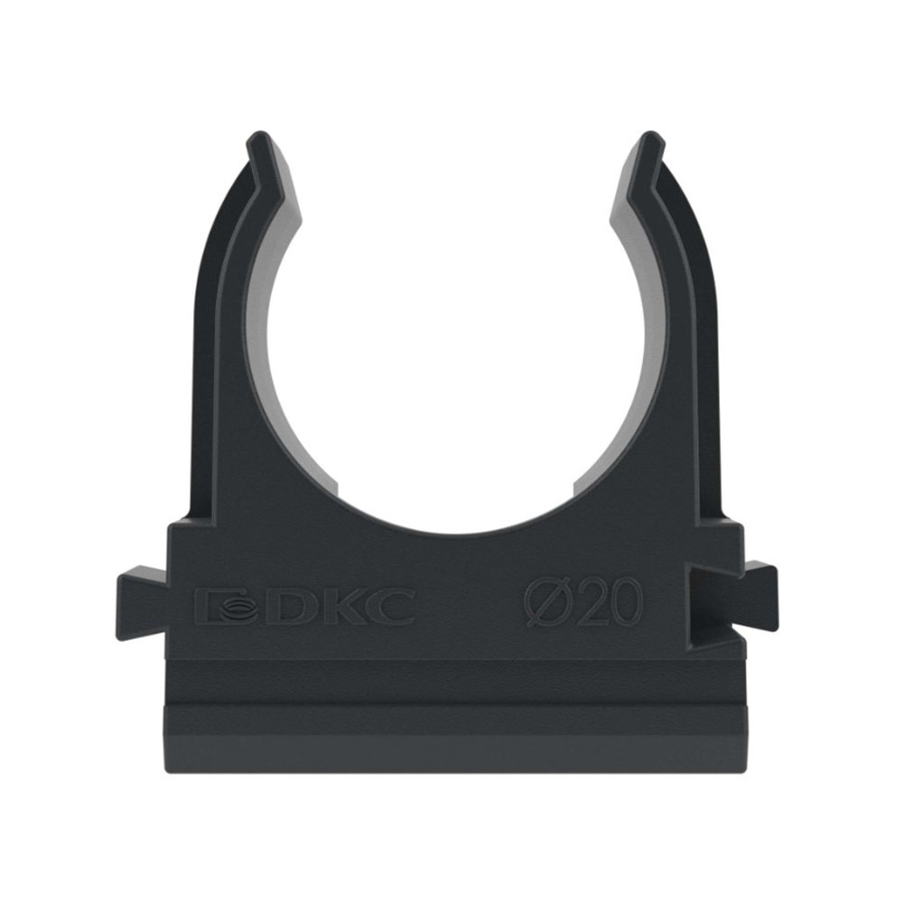 Держатель-клипса с защелкой 20 мм Черная для труб DKC - предназначен для крепления жестких гладких и гофрированных труб к поверхности стен, потолков, полов и перегородок. Держатели разного диаметра могут быть состыкованы друг с другом с помощью специальных фиксаторов типа ''ласточкин хвост'' и могут быть установлены на направляющую для крепления держателей.
