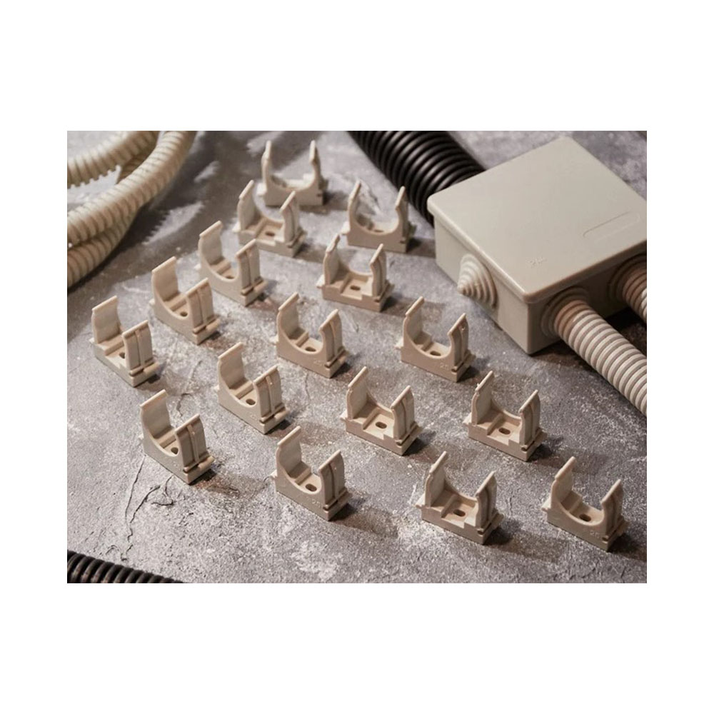 Держатель-клипса с защелкой для монтажного пистолета Ø 25 мм для труб Серая REXANT - предназначен для крепления пластиковых труб к стене, потолку или полу. Выдерживает повышенные механические нагрузки, возникающие при монтаже с использованием пневмопистолета. Изготовлен из качественных материалов по современным технологиям пластикового литья. Изделие оснащено фиксаторами типа "шип-паз": при установке возможно соединять крепежи-клипсы различных диаметров. Для установки элемента предусмотрено технологическое отверстие под дюбель или саморез, а также уменьшенное отверстие под гвоздь по бетону. Широкие лапки изделия обеспечивают надежную фиксацию труб без возникновения замятий. Благодаря качественному пластику и прочным ребрам жесткости крепеж-клипса не ломается и не ослабляется под воздействием низких и высоких температур.