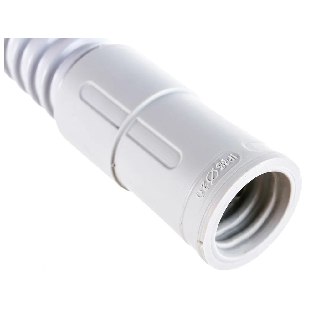 Муфта соединительная труба-труба гибкая для жестких труб Ø 20 мм IP65 DKC - герметизация обеспечивается уникальной технологией двухкомпонентного литья, при котором мягкие уплотнительные элементы вплавляются в корпус муфты при ее производстве и образуют с ним единое целое. Уплотнительный элемент внутри аксессуара выполнен в виде системы двух уплотнительных выступов, взаимодополняющих друг друга и обеспечивающих столь высокую степень защиты. Минимальный радиус изгиба: 2 внешних диаметра.