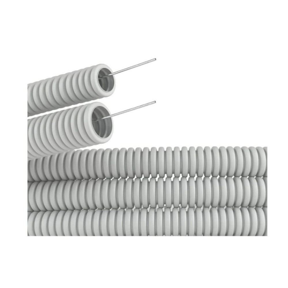 Труба ПВХ гофрированная Серая с зондом 16 мм 100 м Биохимпласт - надежно защищает кабель от механических воздействий. Используется для прокладки электрического, компьютерного, телефонного кабелей. Труба этого типа прокладывается в стенных штробах, в пустотах фальшпотолков и фальшстен, в стяжке полов или под фальшполами. Проволочная протяжка облегчает прокладку кабеля в трубе. Диаметр – 20 мм. Материал – самозатухающий поливинилхлорид (ПВХ). Цвет – серый. Гофрированные трубы из ПВХ легкой серии могут эксплуатироваться при температуре от – 25 °С до + 60 °С.