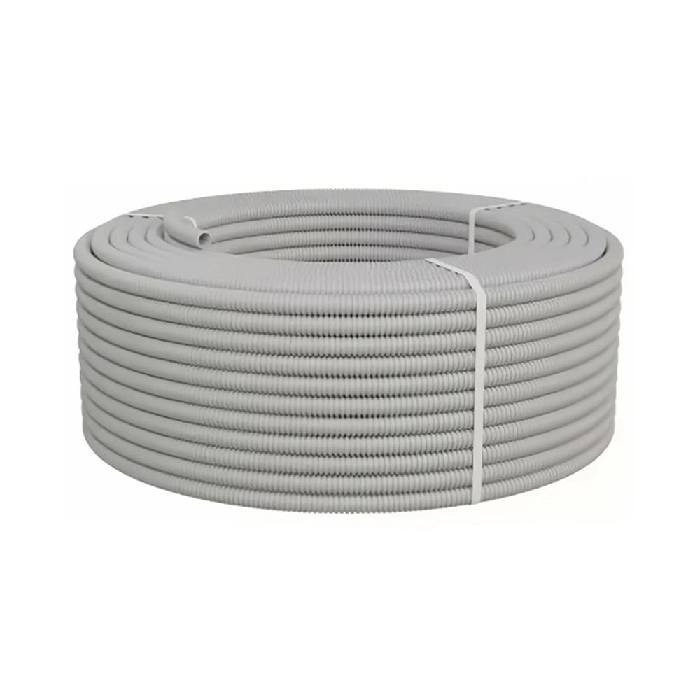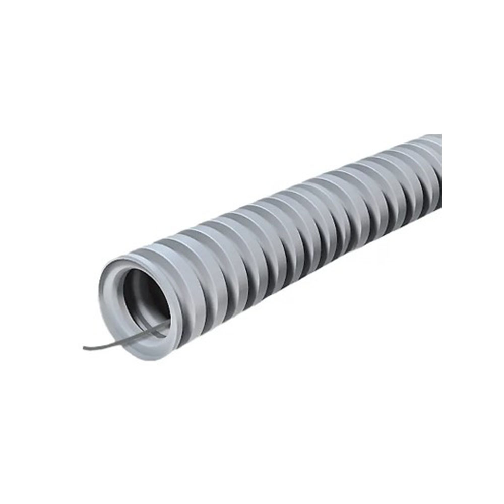 Труба ПВХ гофрированная Серая с зондом 25 мм Ideal - используется для прокладки электрического, компьютерного, телефонного кабелей. Труба этого типа прокладывается в стенных штробах, в пустотах фальшпотолков и фальшстен, под фальшполами. Трубы эластичны и износостойки, не деформируются при сдавливании или скручивании, не ломаются при монтаже.