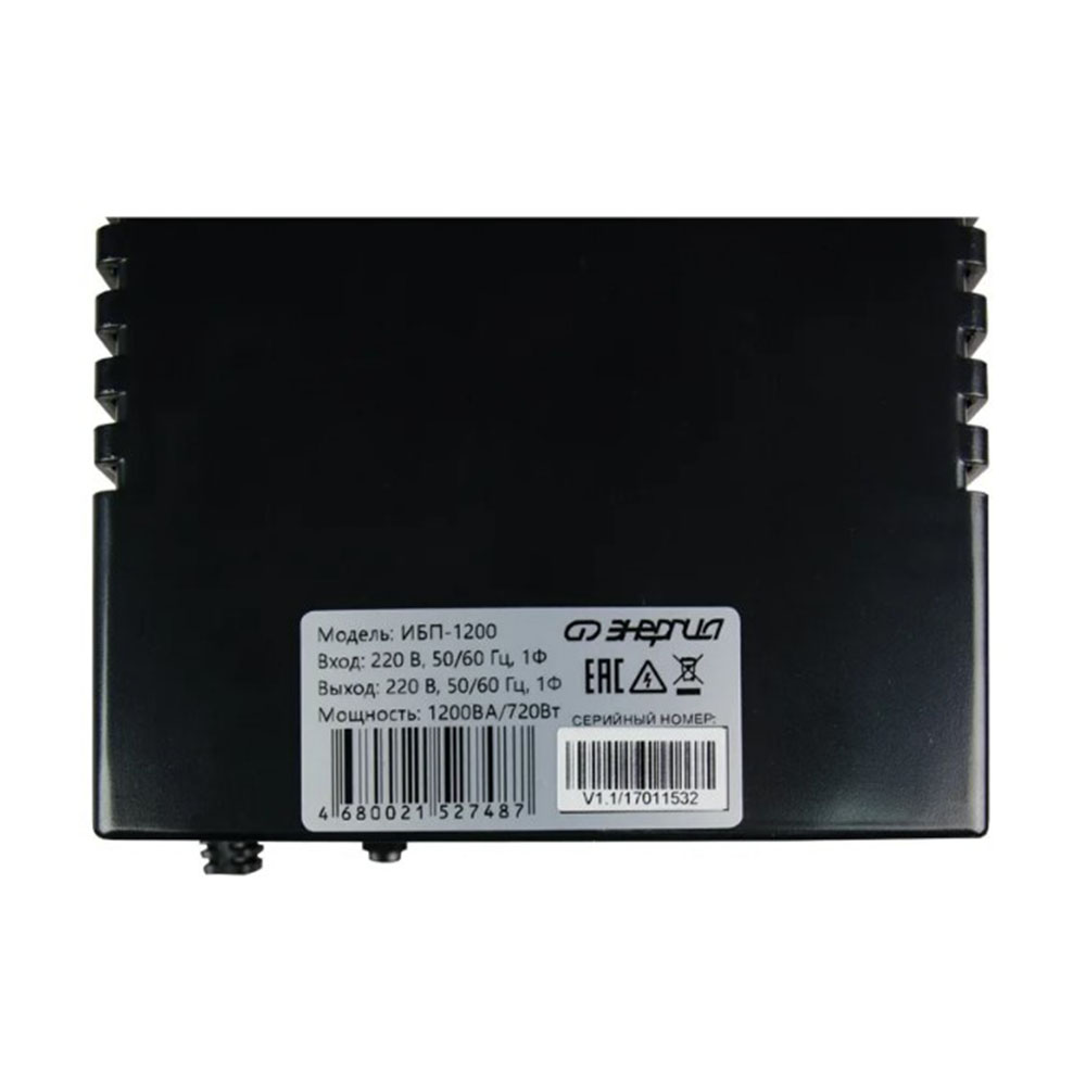 Источник бесперебойного питания ИБП 1200ВА/720Вт Энергия - специализированное устройство для защиты офисной и домашней техники от резкого отключения электропитания или скачков напряжения в диапазоне от 165 до 275 В. При выходе за эти пределы ИБВ переходит на работу от встроенного AGM-аккумулятора. Заряда АКБ хватит на корректное завершение всех работ в течение 3-20 минут. Данная модель дополнительно оснащена защитными системами от полного разряда/перезаряда аккумулятора, перегрузки и короткого замыкания.