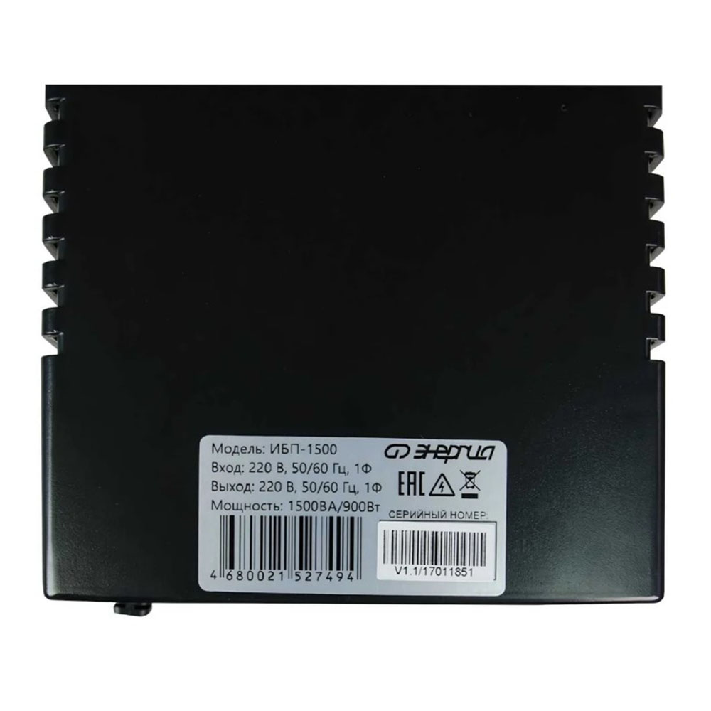 Источник бесперебойного питания ИБП 1500ВА/900Вт Энергия - широко используется как в офисах, так и в домашних условиях для защиты оргтехники и бытовых приборов от скачков напряжения, короткого замыкания и резкого отключения электроэнергии. Такой аппарат позволит в течение 3-20 минут завершить работу на компьютере, сохранив все данные без риска их утери. ИБП данной модели оснащен стабилизатором напряжения с релейными ключами. В конструкции изделия предусмотрено два AGM-аккумулятора 12 В, 8 Ач, соединенных последовательно.