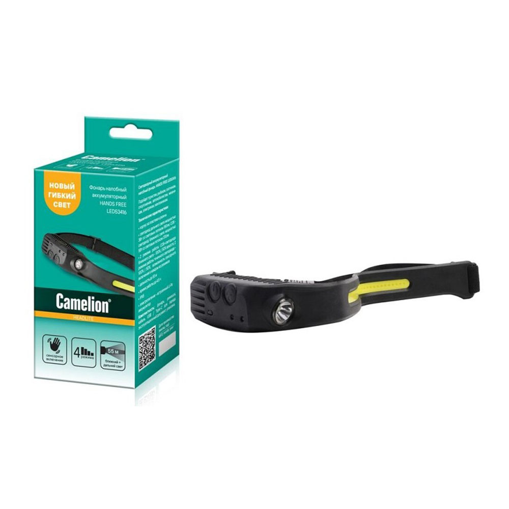 Фонарь налобный 3,7В 2LED 3В 4 режима светодиодный аккумуляторный Camelion LED53416 - Этот налобный светодиодный фонарь от Camelion оснащен аккумулятором на 3.7 Вольт и двумя светодиодами на 3 Ватт. Он имеет четыре режима работы и удобную функцию сенсорного управления. Для зарядки используется кабель USB Type-C. Этот фонарь идеально подойдет для походов, велосипедных прогулок и других активностей на открытом воздухе.