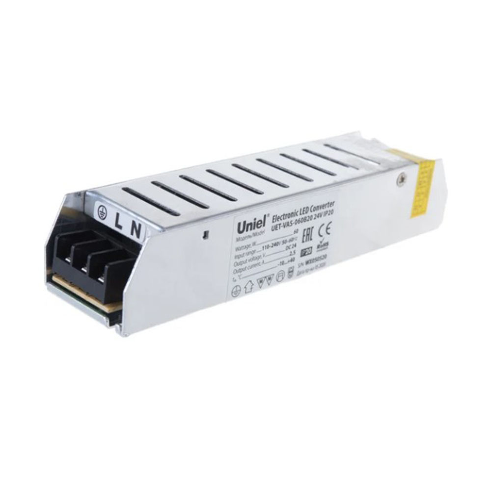 Блок питания 60Вт 24В IP20 металлический корпус Uniel UET-VAS-060B20 - устройство, разработанное для обеспечения стабильного электропитания на напряжение 24В с мощностью до 60Вт, представляет собой идеальное сочетание инженерной точности и практичности. Заключенный в прочный металлический корпус, он не только защищает внутренние компоненты от механических повреждений, но и эффективно отводит тепло, гарантируя бесперебойную работу даже при длительных нагрузках. Степень защиты IP20 обеспечивает надежную охрану от твердых частиц размером более 12,5 мм, делая его подходящим для использования в сухих и контролируемых условиях, где влага не является угрозой.
