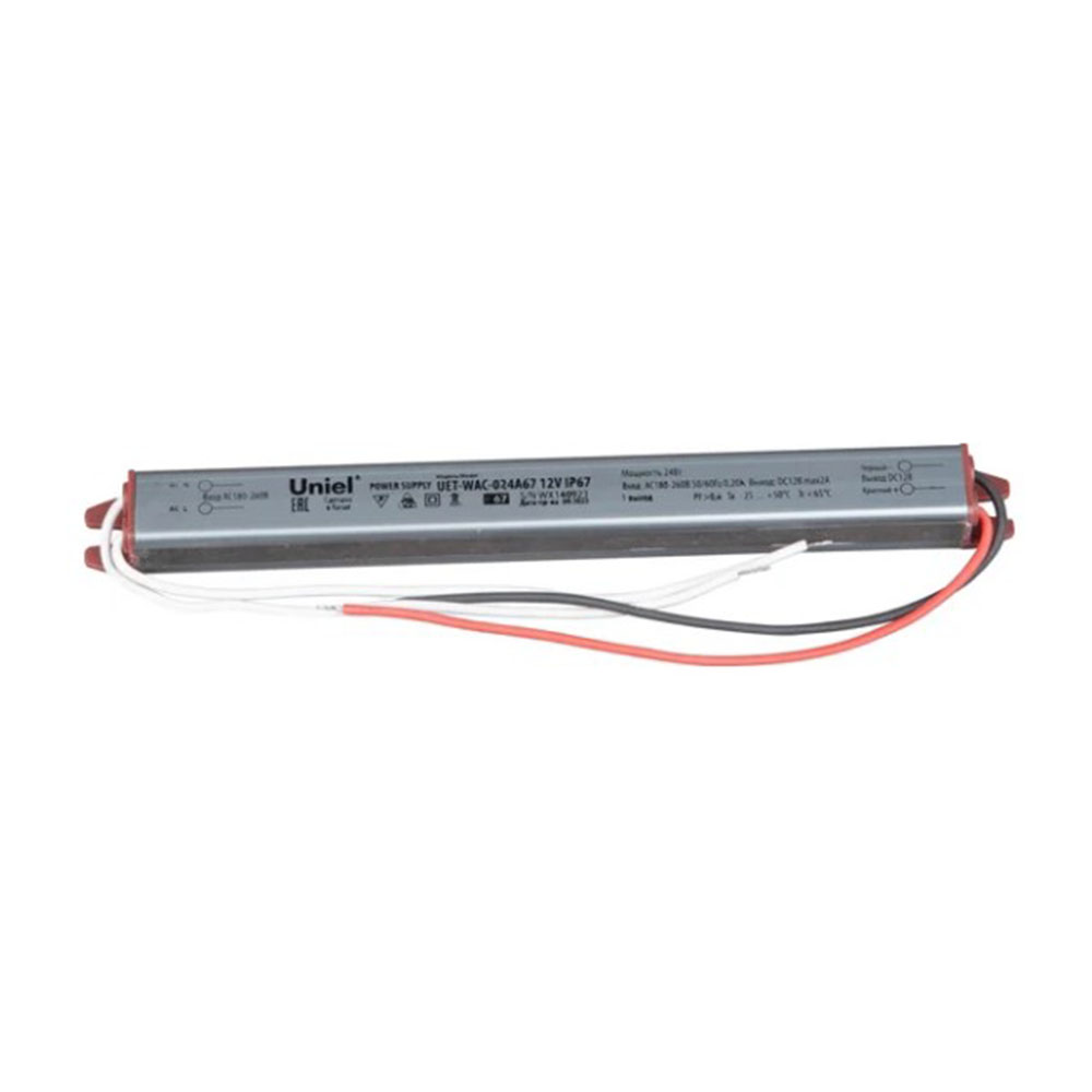 Блок питания ультратонкий 24Вт 24В IP67 металлический корпус Uniel UET-WAC-024B67 - становится воплощением инженерной мысли, сочетая в себе компактность, мощность и надежность. Этот источник питания, облаченный в прочный металлический корпус, предназначен для обеспечения стабильного электроснабжения устройств, требующих напряжения 24В и мощности до 24Вт.
