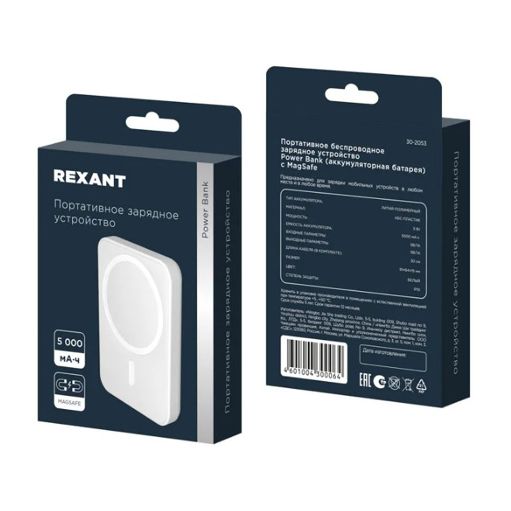 Портативное беспроводное зарядное устройство Power Bank 5000 mAh MagSafe Белое - предназначено для зарядки мобильных устройств в любом месте и в любое время, когда нет доступа к электросети. Его можно брать с собой в путешествия, деловые поездки, походы на природу и т.д. Благодаря удобству использования это портативное зарядное устройство станет незаменимым аксессуаром для всех, кто ценит свободу передвижения и мобильность.