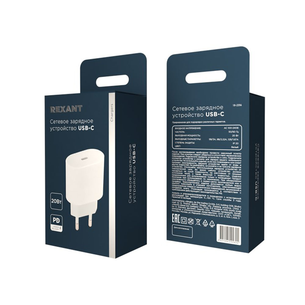 Сетевое зарядное устройство с одним портам USB-C 20Вт 20Вт Rexant - это компактное и мощное устройство для подзарядки различных гаджетов. Оно поддерживает стандарт быстрой зарядки Power Delivery 3.0 и имеет выходную мощность 20 Вт. Благодаря разъёму USB-C устройство совместимо с большинством современных девайсов. Прочный термостойкий корпус и компактные размеры обеспечивают лёгкость в использовании.