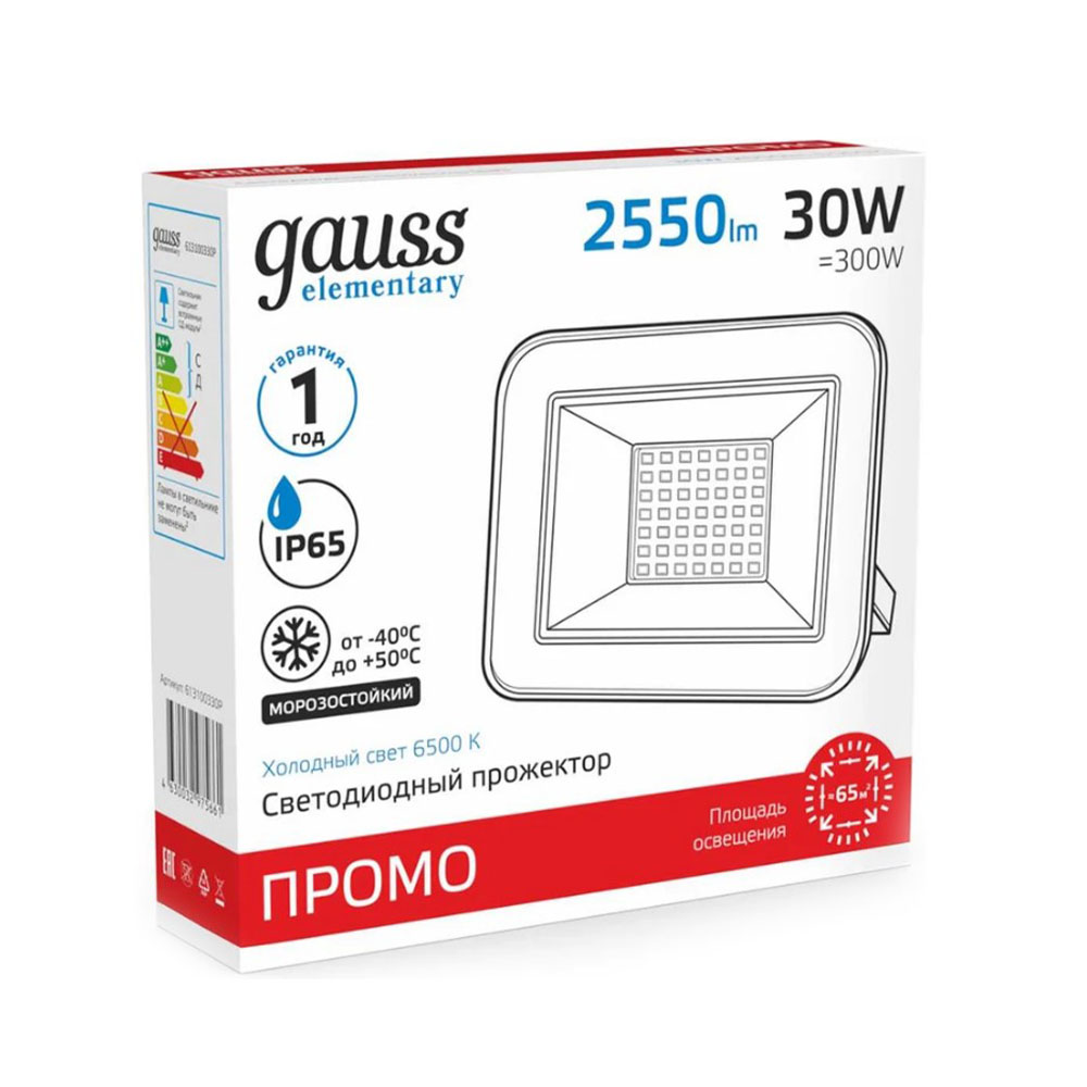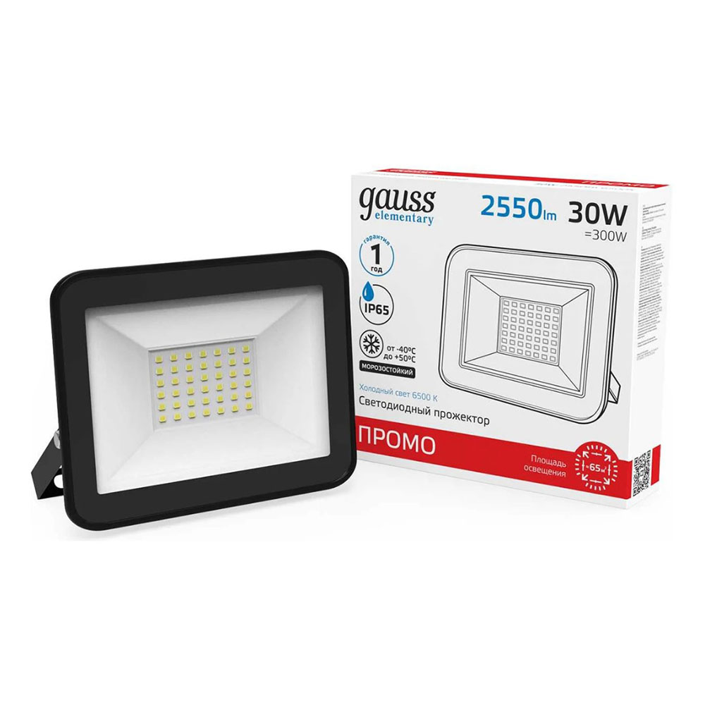 Прожектор светодиодный ДО 30 Вт 6500К 4750 лм IP65 Elementary GAUSS - созданный для экстерьерной общей подсветки зданий и сооружений, освещения складов, промышленных и торговых объектов, а также ландшафтных объектов, теперь имеет улучшенную модификацию корпуса. Корпус прожектора серии Elementary изготовлен из прочного литого алюминия, рассеиватель выполнен из прозрачного закаленного стекла. Экономичная LED технология сокращает до 90% затрат на электроэнергию. Использование надежного нелинейного интегрированного драйвера гарантирует работу практически в любых условиях, отсутствие электромагнитных помех и высокий коэффициент мощности более 0,9. Материалы изготовления и конструкция прожекторов Elementary обеспечивают их высокую механическую прочность и полную защиту от пыли и влаги по классу IP65.