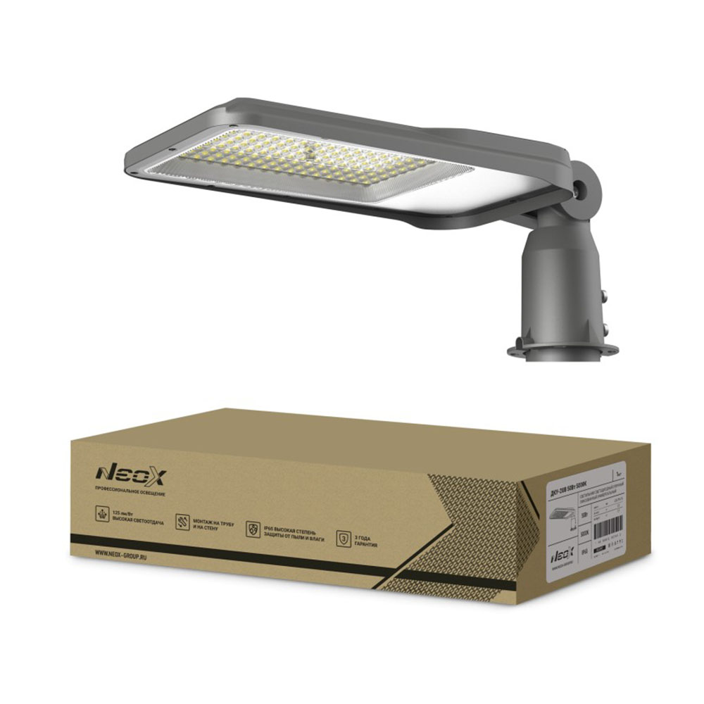 Светильник уличный светодиодный ДКУ-2UB 50Вт 230В 5000К 6250Лм универсальный IP65 NEOX - предназначен для освещения автостоянок, площадей, парков, территорий дворов, образовательных учреждений, коттеджных поселков, пешеходных зон и велодорожек. Выполнены из литого алюминия и оснащены линзами для более эффективного распределения светового потока. Измение угла наклона светильника дает возможность регулировать направление света.