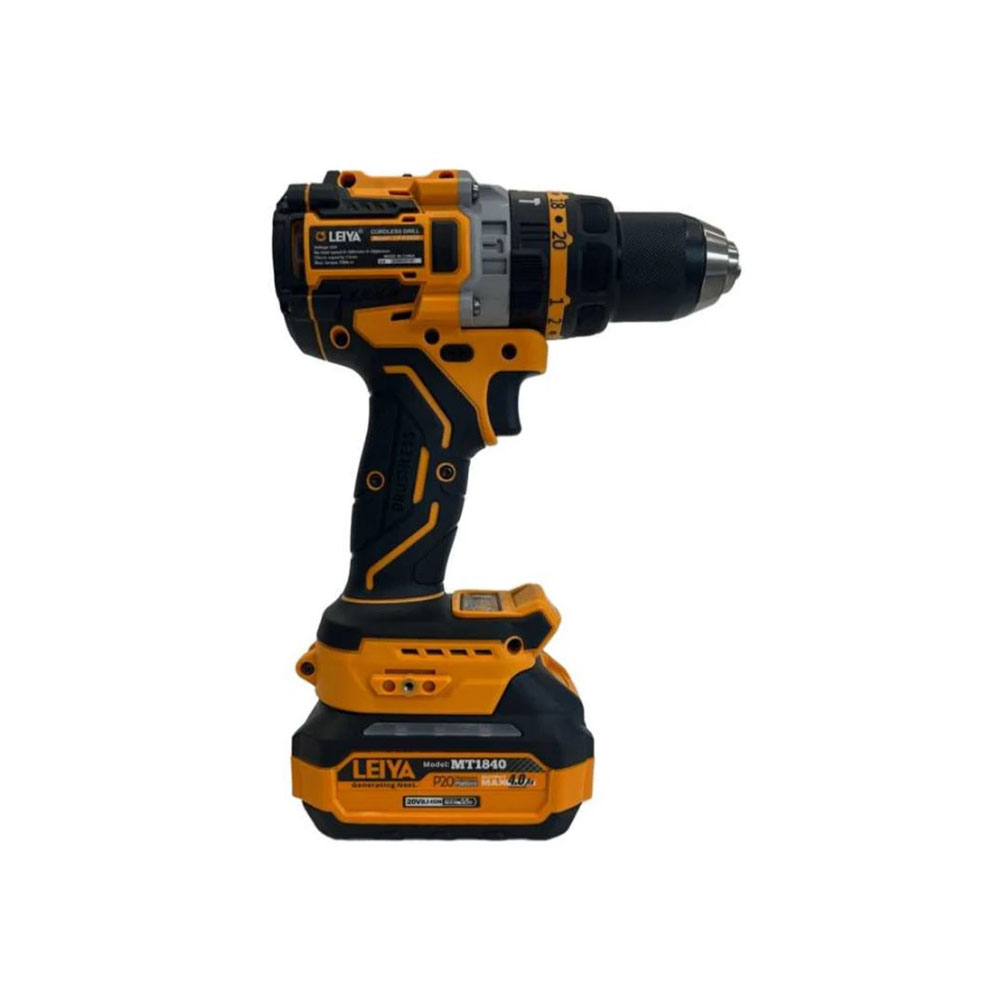 Дрель-шуруповерт ударная Leiya LY-C3520 - компактный профессиональный инструмент с бесщеточным двигателем для сверления, закручивания и ударного режима. Идеальна для дома, стройки, мебели. Быстрозажимное крепление. Плавное изменение скорости. Конструктивные особенности. Индикатор заряда аккумулятора. Антивибрационная рукоятка.