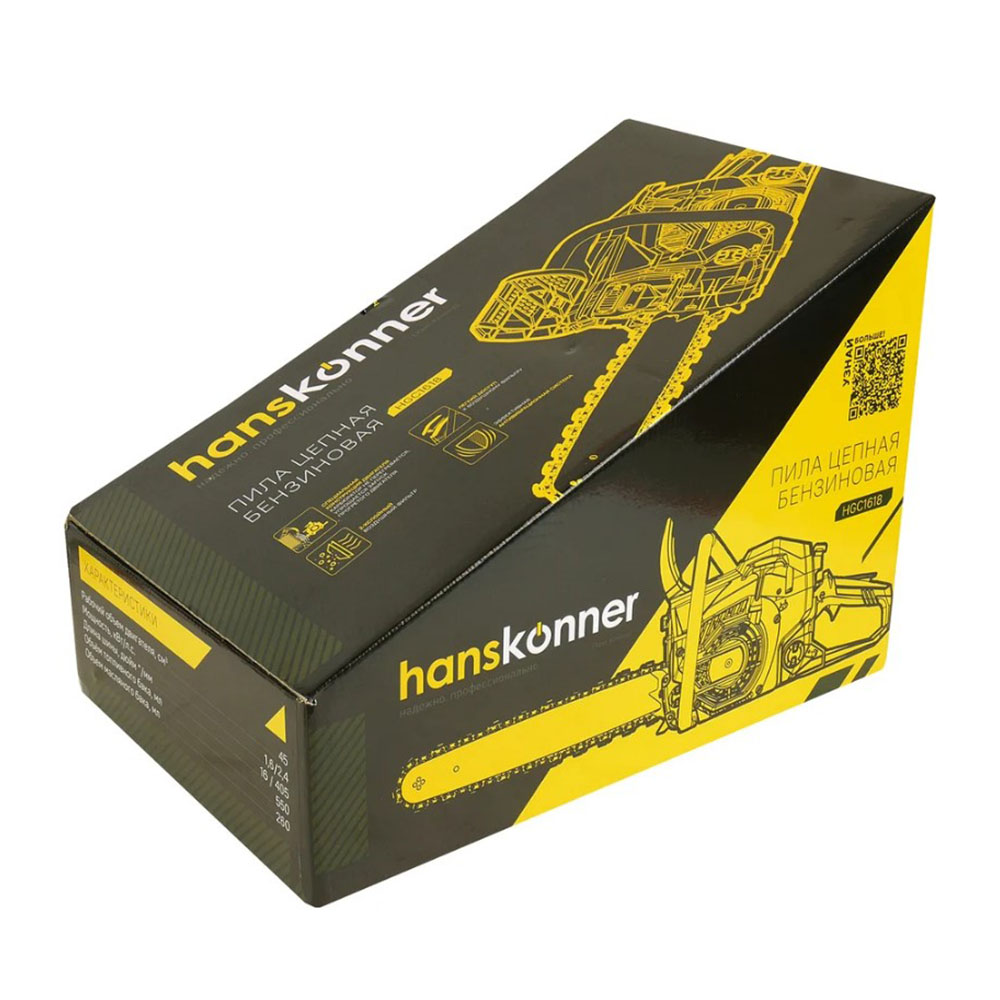 Бензопила 1.6 кВт шина 16" 64 зв 0,325" HGC1618 Hanskonner - подходит для выполнения внутрихозяйственных работ и удобна для ухода за деревьями. Верхнее расположение основной ручки позволяет оператору легко управлять бензопилой даже находясь на высоте. Эргономичное расположение рукояток относительно центра тяжести делает инструмент удобным и хорошо сбалансированными, что позволяет комфортно контролировать его в любых ситуациях. Безопасность работы обеспечивается предохранительной клавишей, предотвращающей случайное нажатие газа, ограничителем цепи, защитным щитком для правой руки, а также цепным тормозом, активируемым принудительно либо силой инерции. Два способа активации тормоза цепи повышают безопасность труда. Дополнительно предусмотрен праймер подкачки топлива, чтобы обеспечить возможность завести холодный мотор бензопилы в сложных условиях.
