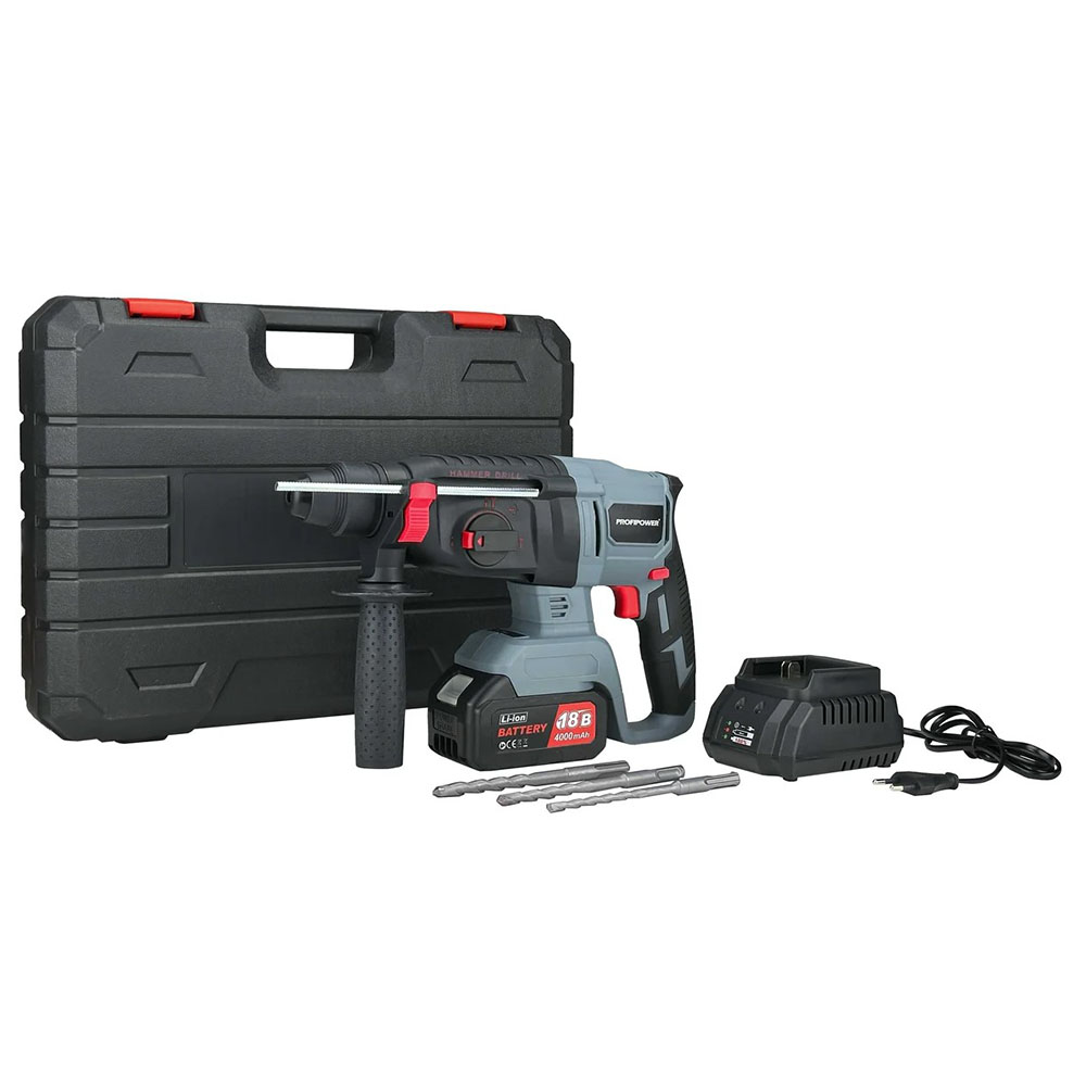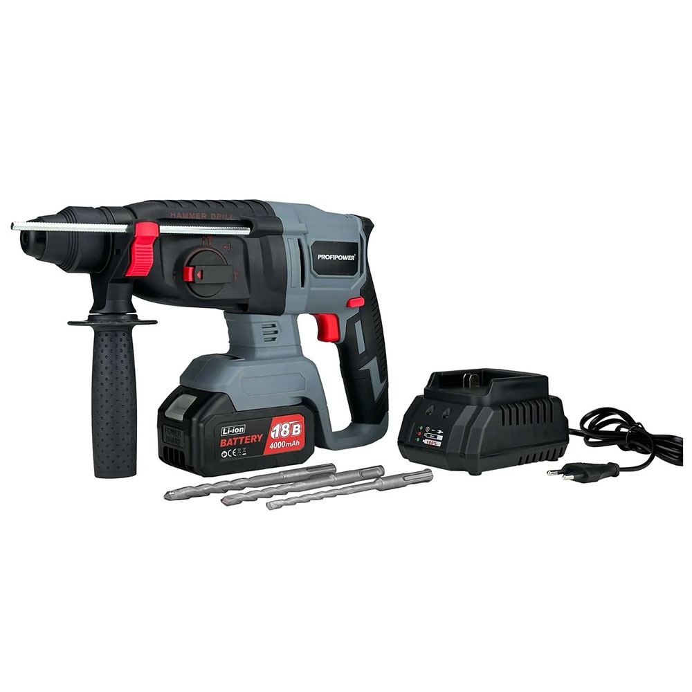 Перфоратор аккумуляторный беcщеточный кейс PROFIPOWER MKDHR-18V - наличие трех режимов работы: долбление, сверление, сверление с ударом, плюс - функция поворота долота уверенно обеспечивает выполнение работ без использования дополнительного инструмента. Компактный бесщеточный двигатель имеет более стабильные рабочие параметры, не изнашивается и не требует обслуживания. Прочный корпус с резиновыми демпферами обеспечивает превосходное управление инструментом и его безопасную эксплуатацию даже при интенсивных нагрузках.