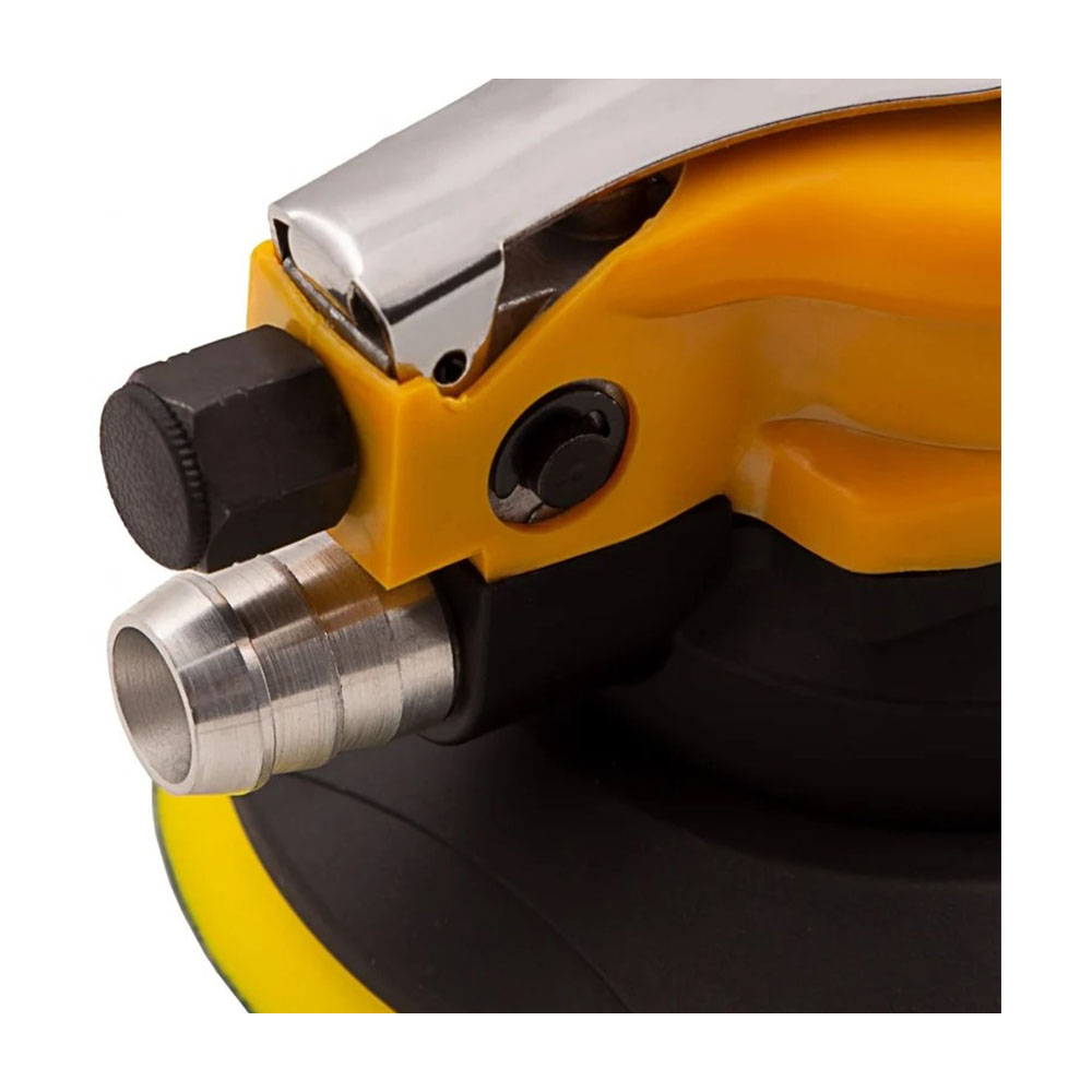 Эксцентриковая шлифовальная машина 150 мм Denzel EPG150 - с амплитудой 5 мм развивает скорость вращения 10000 об/мин при среднем расходе воздуха 160 л/мин. Этого достаточно для эффективного шлифования, зачистки и выравнивания любых поверхностей (древесины, металла, пластика и т.д.). С помощью машинки можно без усилий подготовить материал любой твердости к покраске или отделке, выровнять металл перед сваркой. А при использовании более мягкой насадки получится сделать любую поверхность абсолютно гладкой и придать ей дополнительный блеск.Орбитальная шлифмашина предназначена для работы при давлении 6,3 бар, расход воздуха не превышает 200 л/мин. Во время работы не забывайте использовать специальное масло ISO 46, которое можно добавлять как напрямую в инструмент, так и с помощью блока подготовки воздуха Denzel 57469, включающего в себя лубрикатор для автоматической подачи масла.
