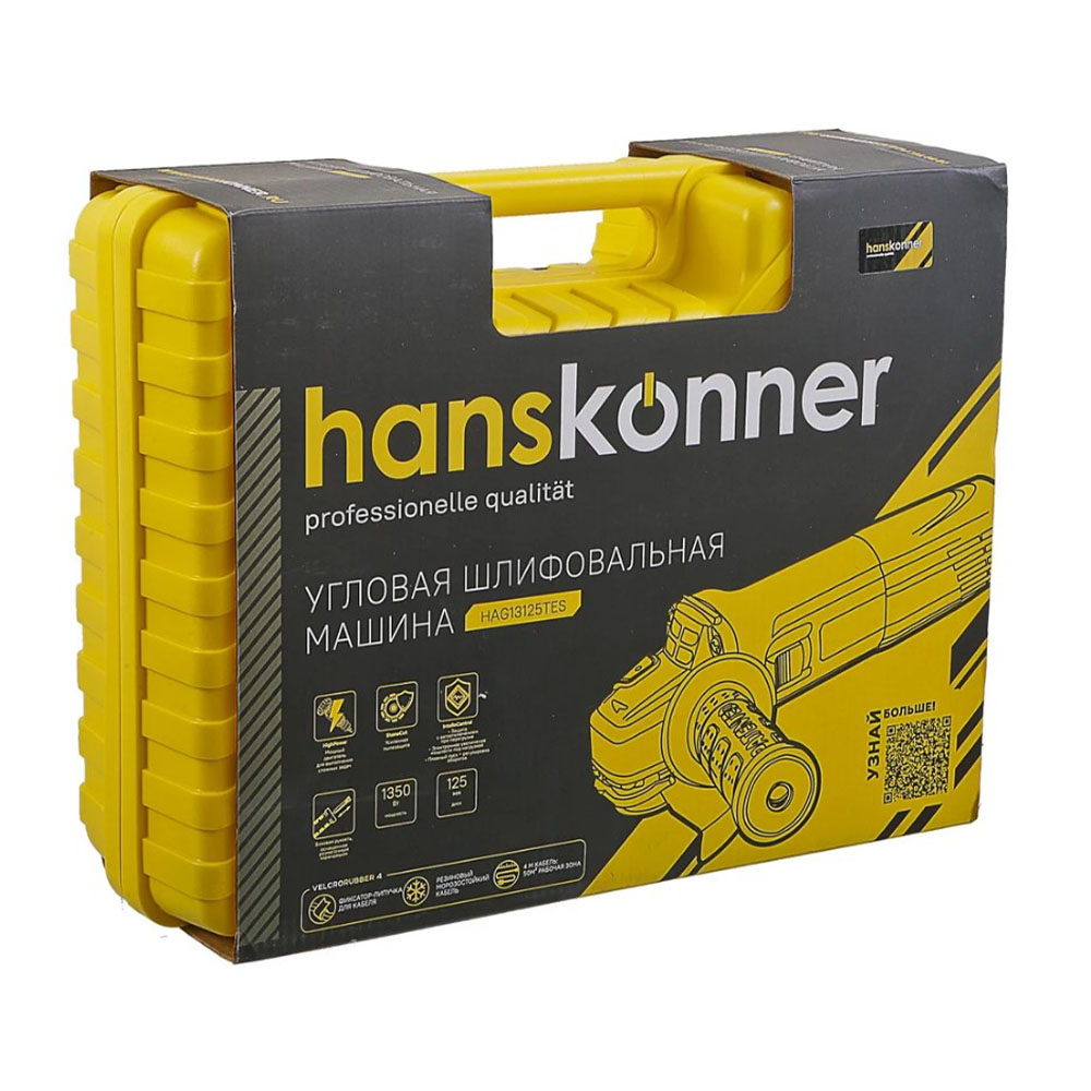 УШМ 125 мм 1350Вт 4000-10000 кейс Hanskonner - легкая, компактная модель с удобным управлением и электронной коррекцией работы для длительного применения в стесненных условиях, с возможностью использования над головой. Оснащена дополнительной опцией "STONE CUT" для обработки камня. Редкая возможность удержания инструмента одной рукой обеспечивается благодаря небольшому весу и компактной конструкции корпуса. Полное электронное управление двигателем с константной электроникой "ElectronicPowerManager" (ЕРМ) повышает качество работ, обеспечивая плавный пуск, эффективную регулировку оборотов и поддержание оптимальной скорости оборотов под любой нагрузкой. Система поддержания постоянного прижимного усилия на щётках "CLOCK SPRING" создаёт стабильный контакт независимо от их износа, поэтому электродвигатель работает с большей отдачей в течении всего срока службы. Качество обработки разнородных материалов обеспечивает функция предварительной установки скорости вращения "SetpointVelocity". Уменьшенный корпус редуктора "NarrowBody" позволяет выполнять более глубокий рез. Безопасный двухполюсный включатель с фиксацией облегчает работу в непрерывном режиме и обеспечивает мгновенное отключение инструмента при необходимости. Оптимизированная внутренняя аэродинамическая схема и улучшенная защита от пыли "DUST PROTECT" предохраняют мотор от перегрева и продлевают его срок службы. Удлиненный, морозостойкий резиновый кабель "4VelcroRubber", сохраняющий свою эластичность при низких температурах, обеспечивает рабочую зону диаметром до 8 м.