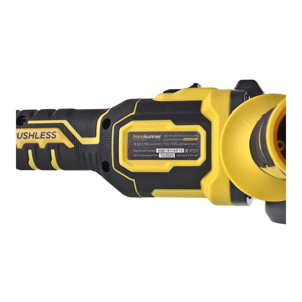 УШМ Аккумуляторная бесщеточная 18В 125 мм 4Ач ЗУ кейс HS Hanskonner HAG18125BLC - является частью системы 1BatterySystem и совместима со всей линейкой инструмента данной системы. Легкая, маневренная и высокопроизводительная модель, обладающая рядом особенностей: Плоский редуктор-позволяет работать в острых углах от 45 °; ElectronicPowerManager-защита с автоотключением при перегрузке, Электронное увеличение мощности под нагрузкой, Плавный пуск + регулировка оборотов; AntiTwist/AntiDrop-защита УШМ с отключением при падении и неожиданном рывке; KickBackStop-функция защиты от обратного удара с технологией гироскопического сенсора: торможение двигателя при заклинивании оснастки; Широкий диапазон регулировки скоростного режима (6 ступеней). HAG18125BLC поставляется в кейсе Hanstorage c аккумулятором 4Ач и зарядным устройством на 4А с охлаждением.