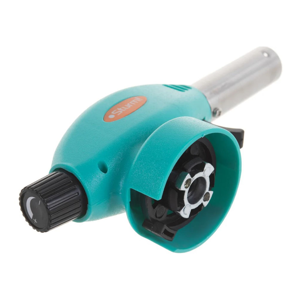 Горелка газовая защита от ветра Sturm - имеет курковый пьезоподжиг, оснащена функцией регулировки пламени. Предусмотрена защита пламени от задувания ветром. Обеспечивается свободное вращение после 2 минут использования.