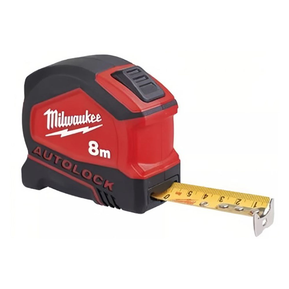 Рулетка 8 м 25 мм ширина Автостоп Milwaukee Autolock - удобна для проведения измерений различной сложности. Для удобства ношения есть металлическая клипса. Благодаря простому механизму фиксации можно быстро застопорить ленту. Корпус позволяет вести измерения из угла.