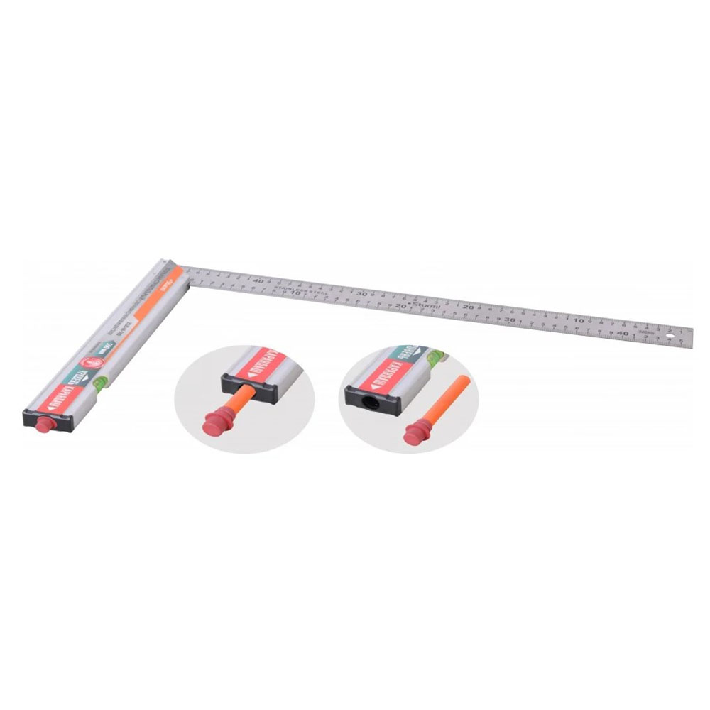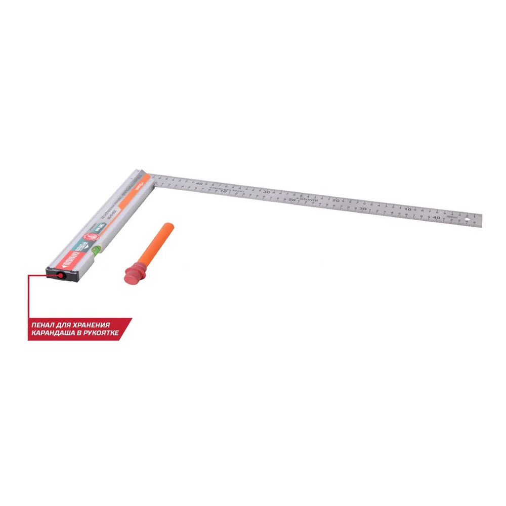 Угольник с уровнем и карандашом КУЛИБИН 500 мм Sturm - уникальная запатентованная система позволяет хранить карандаш прямо в корпусе угольника, благодаря чему он будет всегда под рукой. Переход от замера к разметке и обратно стал максимально быстрым, что в разы экономит время в процессе работы. Крепление осуществляется специально разработанной резиновой втулкой, которая надёжно удерживает карандаш, а так же позволяет его быстро извлечь и вернуть на место, исключая возможную потерю. Колба пузырькового уровня из ударопрочного плексигласа, полотно из нержавеющей стали с антикоррозийным покрытием, гравированная шкала устойчива в внешнему воздействию и сохранению точных показаний.