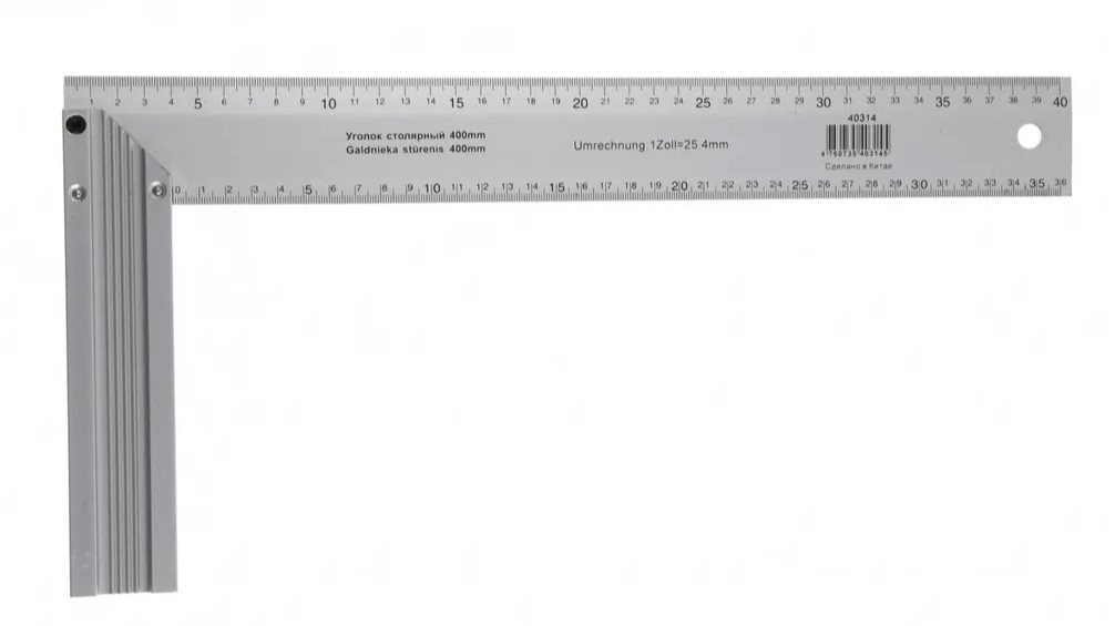 Алюминиевый угольник имеет длинное и облегченное полотно с односторонней разметкой. Угольник предназначен для проведения измерительных работ и контроля отклонений прямых углов от 90 градусов.
