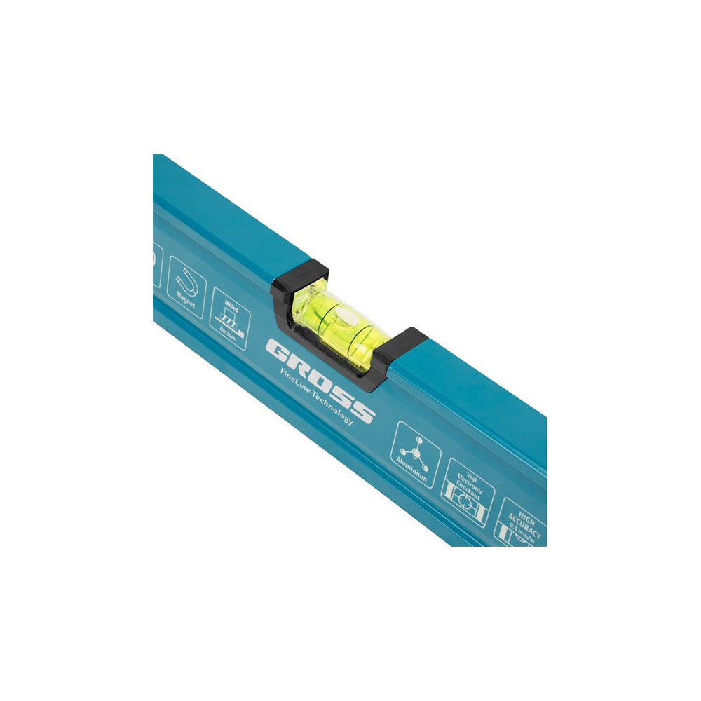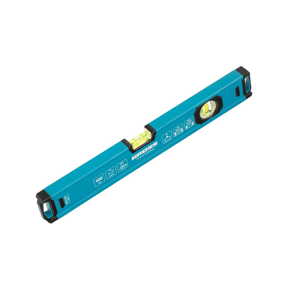 Уровень магнитный 400 мм Gross - используется для определения отклонений от горизонтали и вертикали с точностью до 0,5 мм/м. Уровень можно использовать в перевернутом положении, при этом допустимая погрешность составляет 0,75 мм/м. Базовая поверхность фрезерована, что позволяет повысить точность результатов. Уровень пригодится для проведения строительных, ремонтных и отделочных работ.Прочность — инструмент из коробчатого алюминиевого профиля устойчив к скручивающим нагрузкам