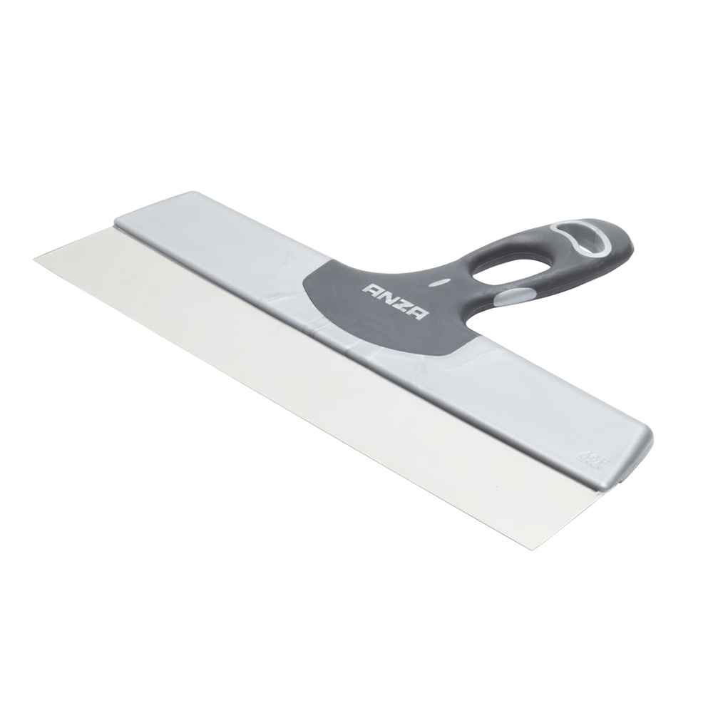 Шпатель из нержавеющий стали с удобной двукомпонентной эргономичной рукояткой.Предназначен для нанесения и выравнивания по поверхностям шпаклевок и других строительных растворов, заделки трещин и швов.