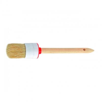 Натуральная светлая щетина, пластмассовый корпус, деревянная рукоятка. Применяется для нанесения красок, эмалей, лаков и других лакокрасочных материалов.