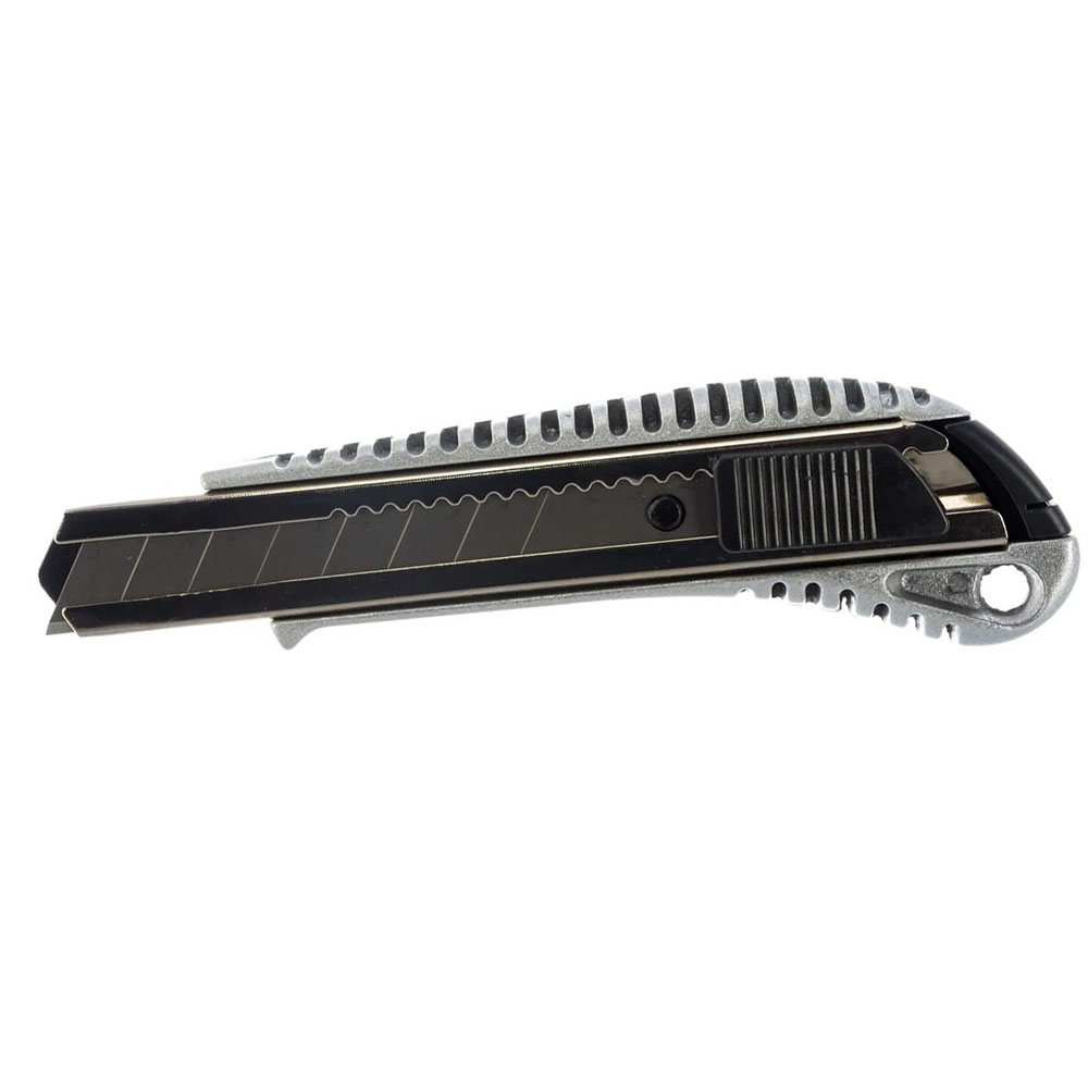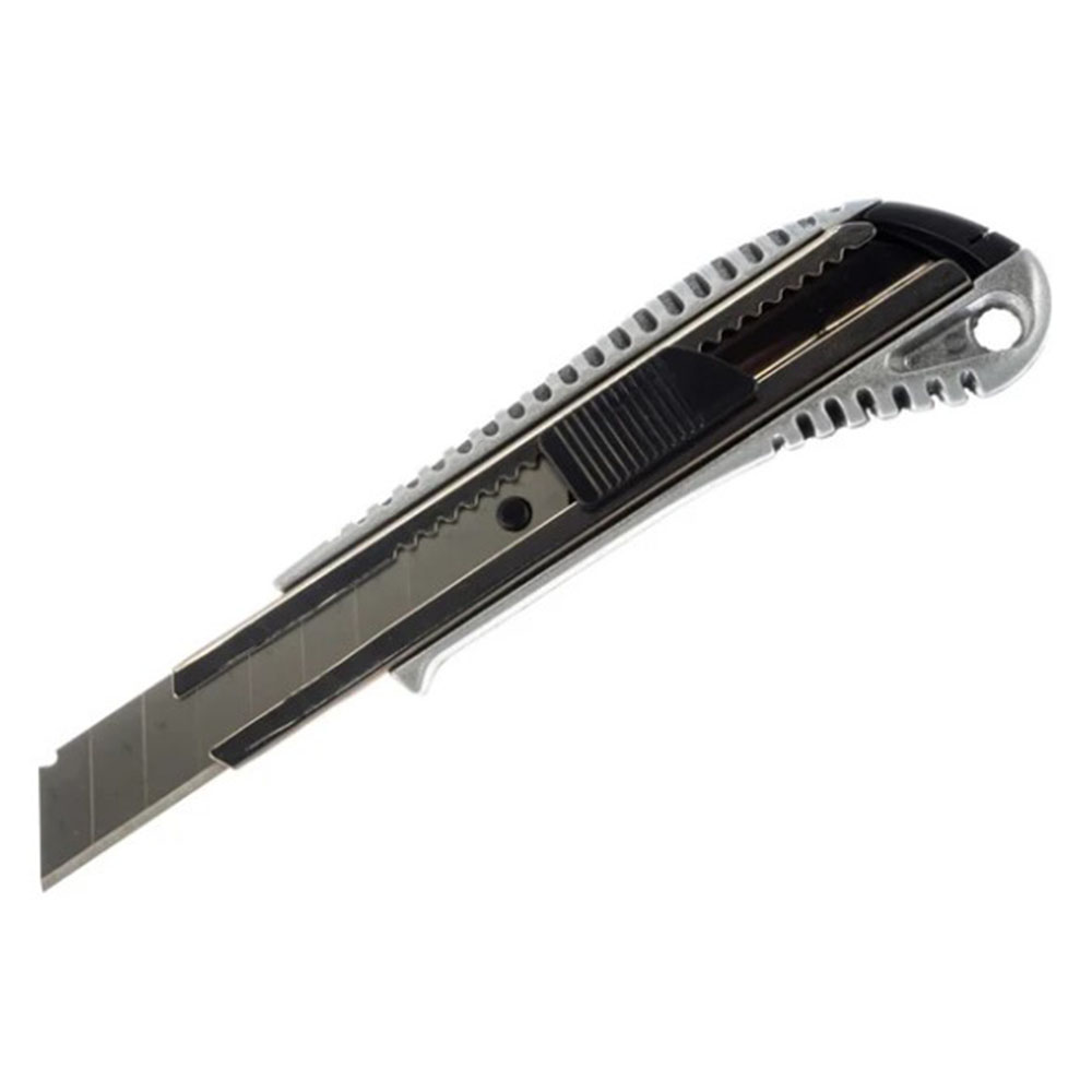 Нож усиленный строительный 18 мм Biber 50116 - имеет более прочную конструкцию по сравнению с обычными пластиковыми ножами. Инструмент оснащен сегментированным лезвием, которое используется для разрезания линолеума, обоев и других материалов.